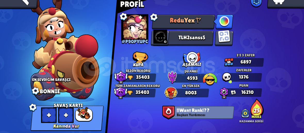 Sezonun bitmesine tek gece kala+1600 de 150 kupa kastı kaybetmeden. Ve bu sayede prestij aldım. Fiyatta da yardımcı oldu. Gayet hızlı ve güvenilir. Teşekkürler
