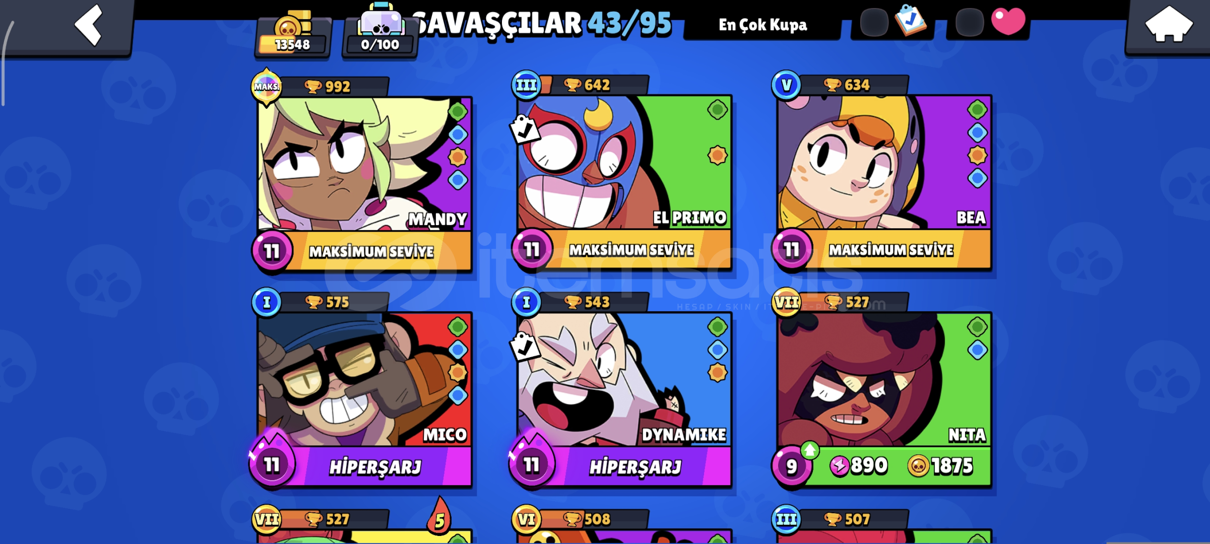 Eski hesap 43 savaşçı ve bir sürü kostüm var