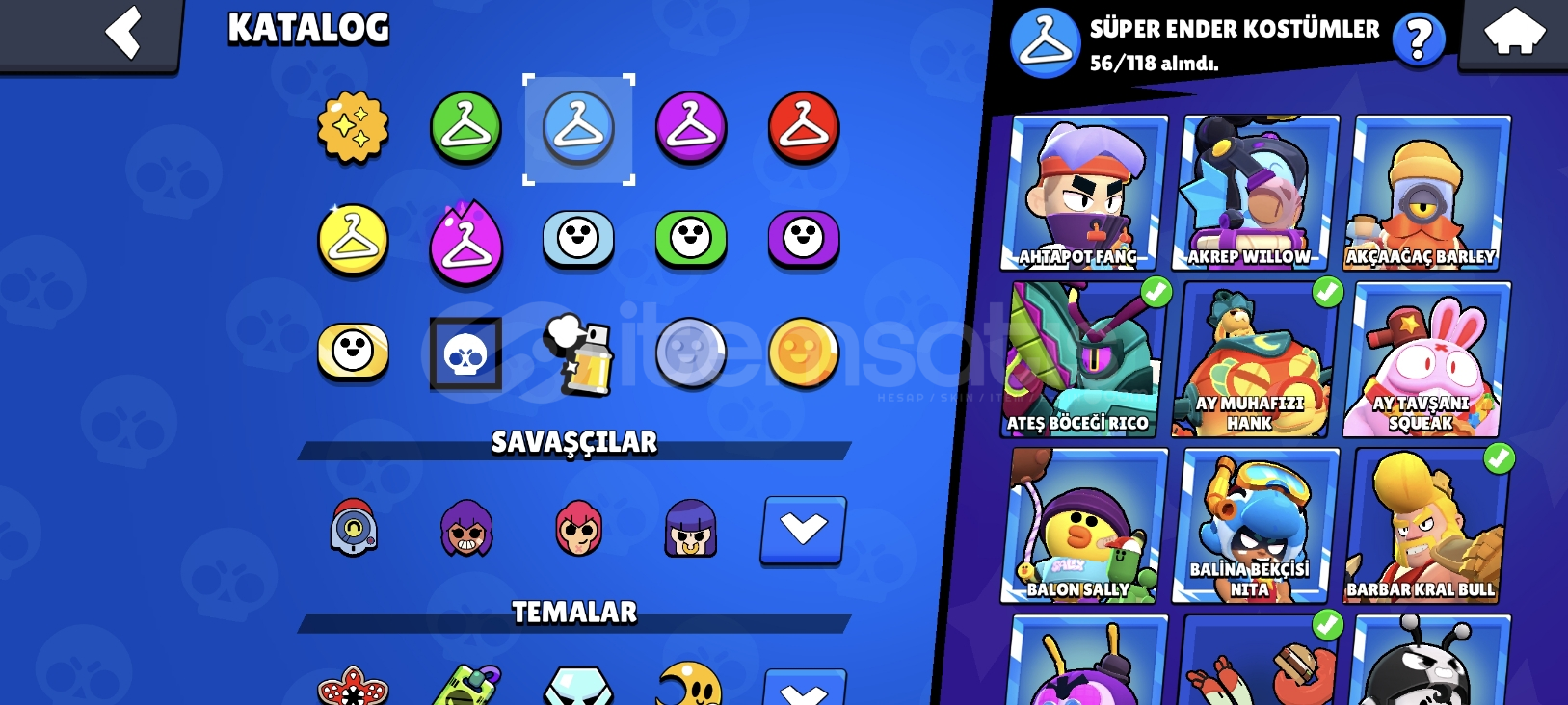 Eski sezon kostümler var 42k kupa Hesap göründü gibi ciddi alıcılar yasın lütfen karakterler 94/96 30+ hiper şarjlı karakter var 25 tanesi açık Mücevher 10.000 var güç yatana 10.000 Elmas 80 altın 7000 eski sezon güzel hesap şimdiden olan hayırlı olsun.