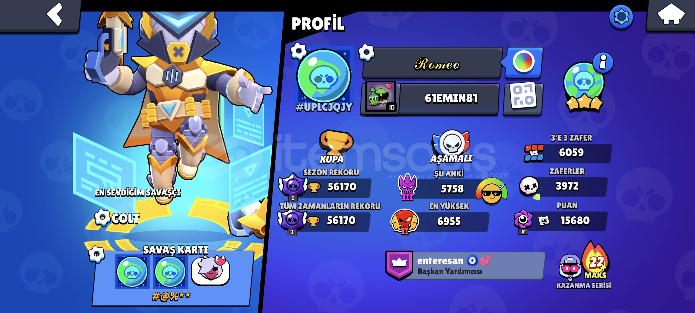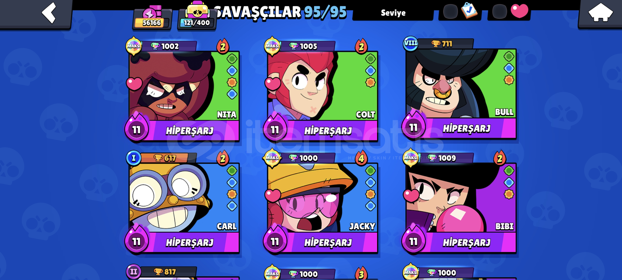 Lou,Çiller,ruff,gale,collet brawl pası açılmış ayrıca 10bb coc hesabı mükemmel hesap mega colt var