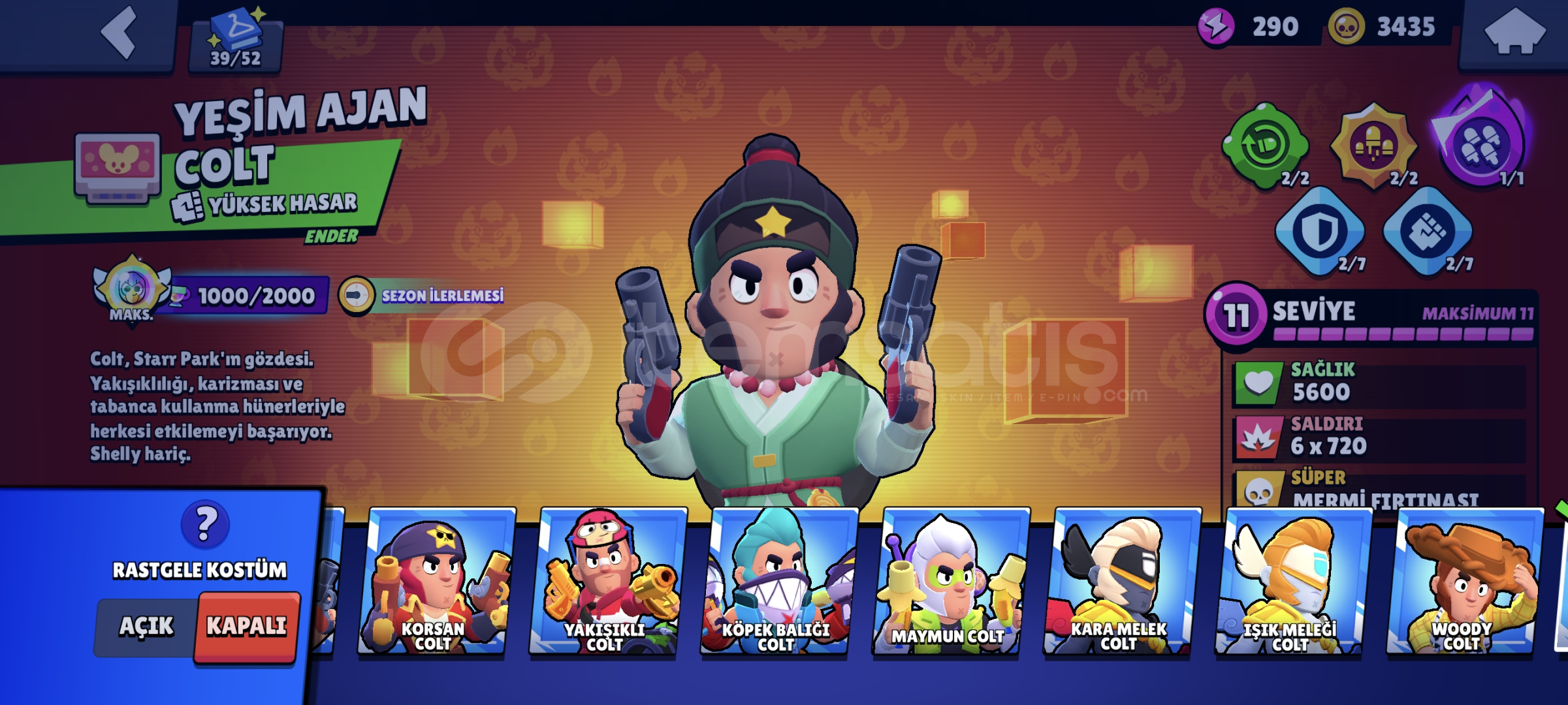 42 tane 11lvl savaşçı 2018 hesabı yilduz shelly mevcut korsan Colt Yeşim ajan Colt gibi bicok nadir kostüm mevcut paza...