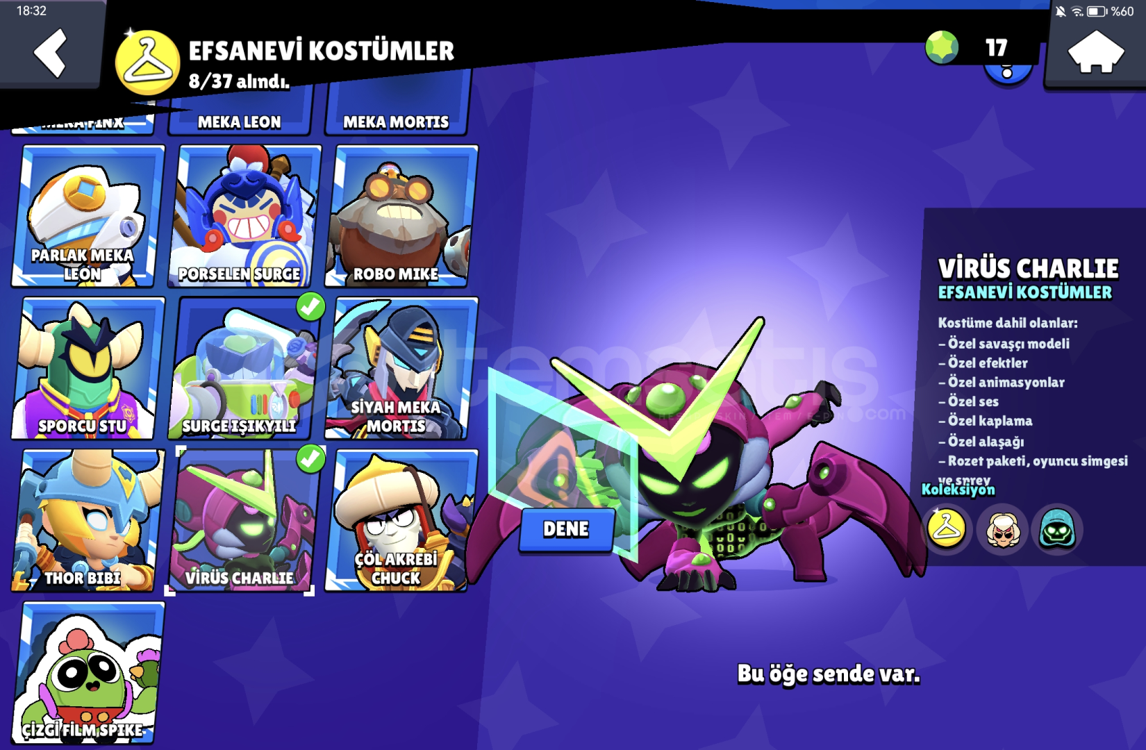 Exclusive Brawl Stars Hesabı 8 Efsanevi Kostüm