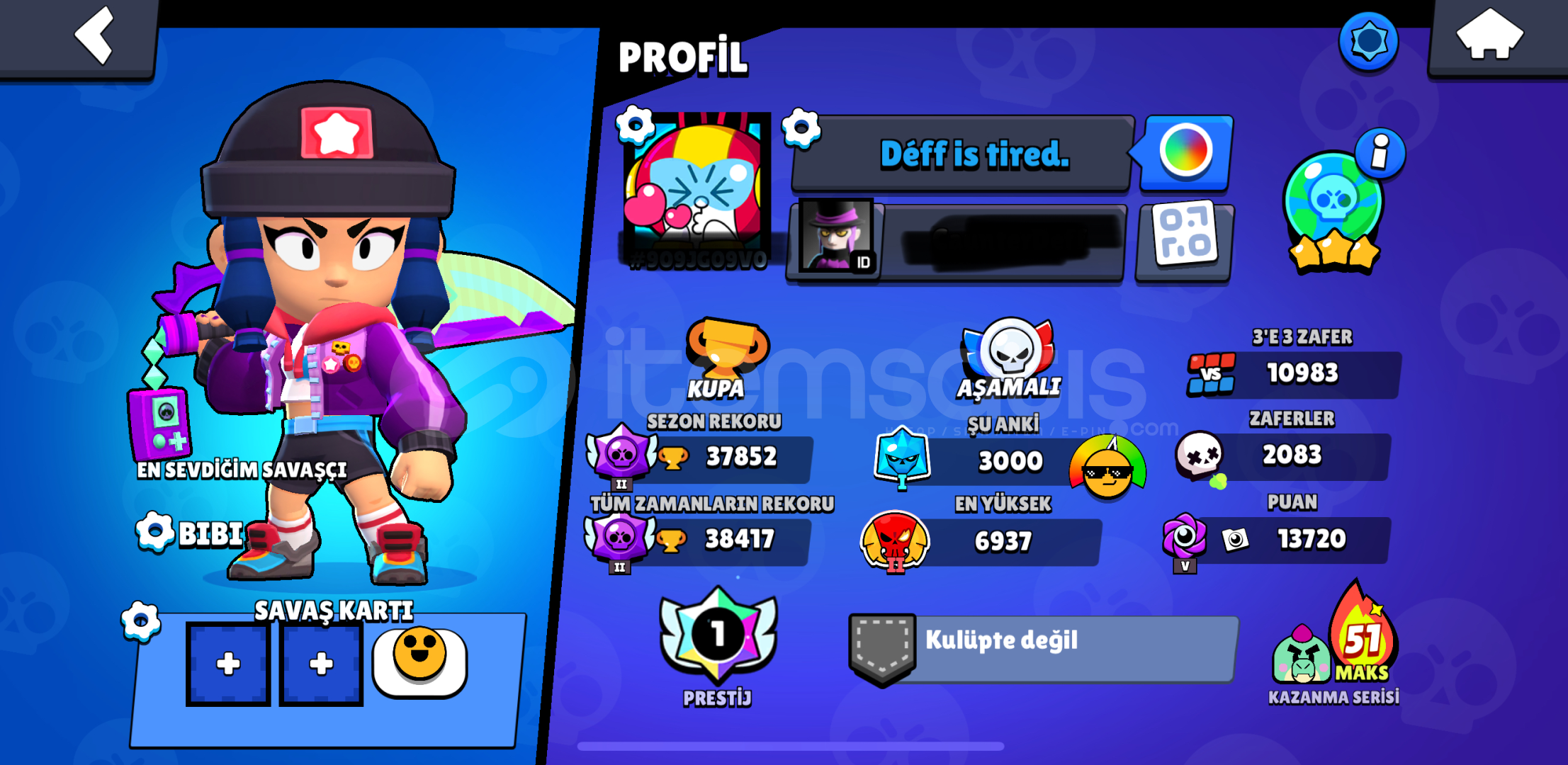 “2019 KURULUM EXCULUSİVE DOLUSU NADİR DOLUSU PRESTİJLİ BS HESABI”______________“HESAP KUPASI,KARAKTER SAYISI İLE DEĞİL NADİRLİĞİ İLE ÖN PLANDADIR”•HESAP ÖMÜR BOYU DEFFSHOP GÜVENCESİ İLE GARANTİLİDİR.______________•38K•80 KARAKTER•21 MAKS (15 AKTİF HİPER)•11K 3v3 ZAFERİ•2K HESAPLAŞMA ZAFERİ•DÜNYA 3 Ş&...