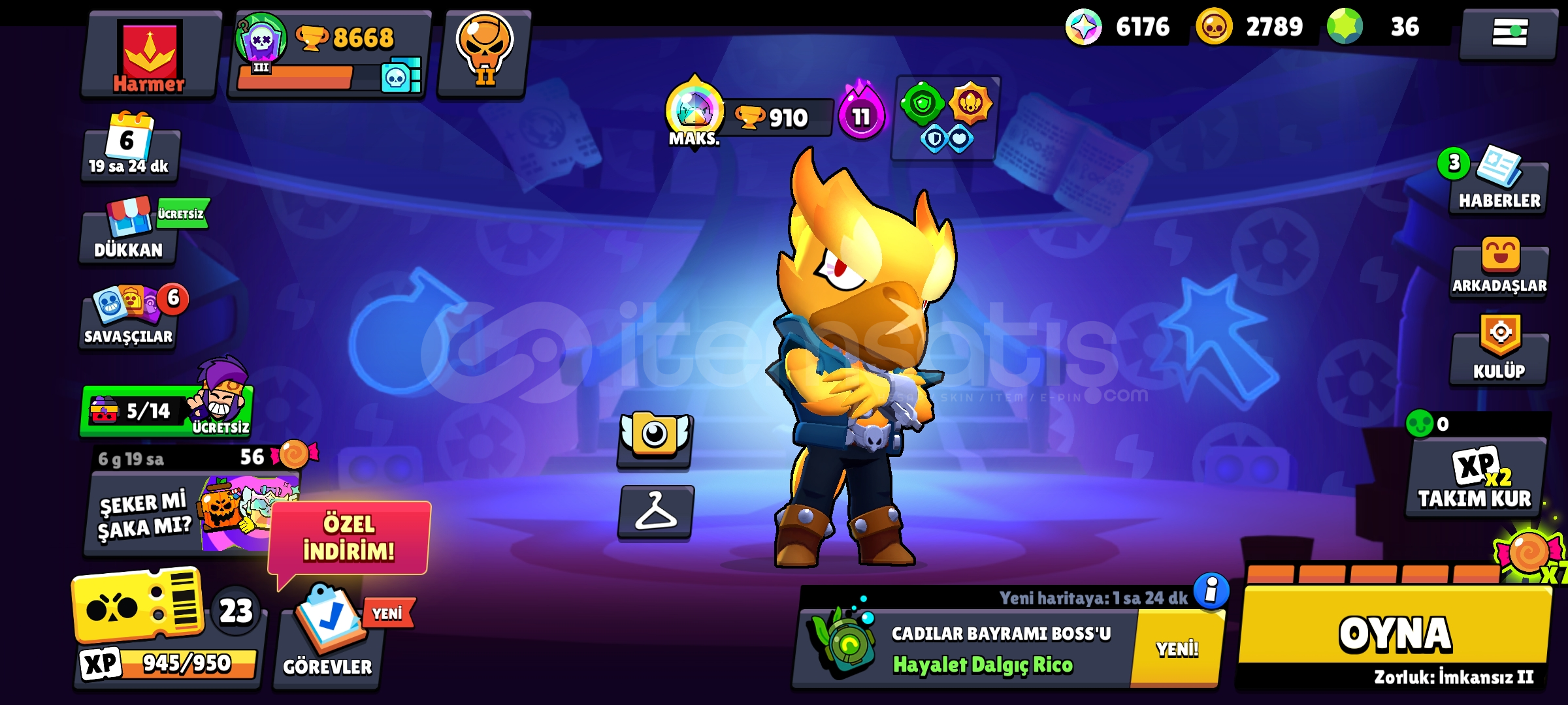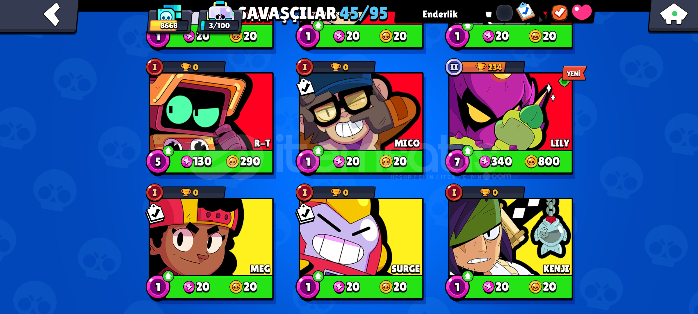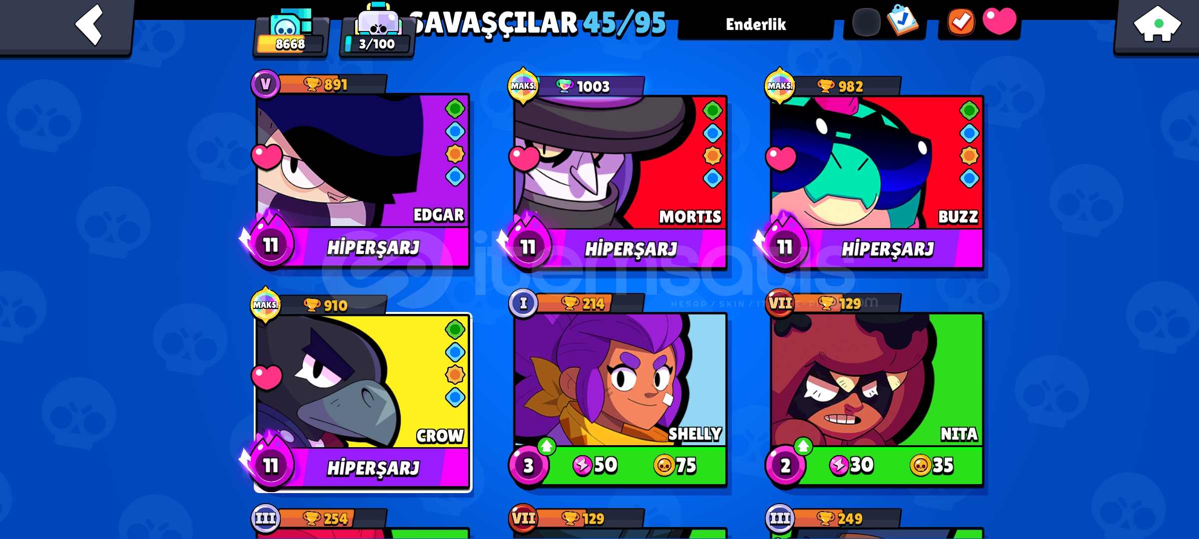 8700 k kupası vardır 45 karakteri mevcuttur4 efsanevi karakter 5 hipersarjli karakter4 Max kupalı karakter5 efsanevi kostüm (e posta desimi olacaktir)cok az indirim olur ciddi olanlar yazsın