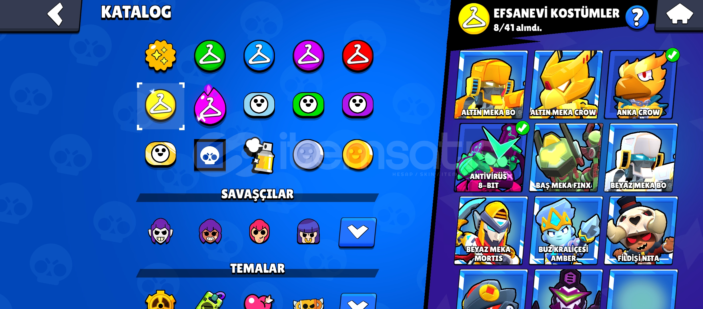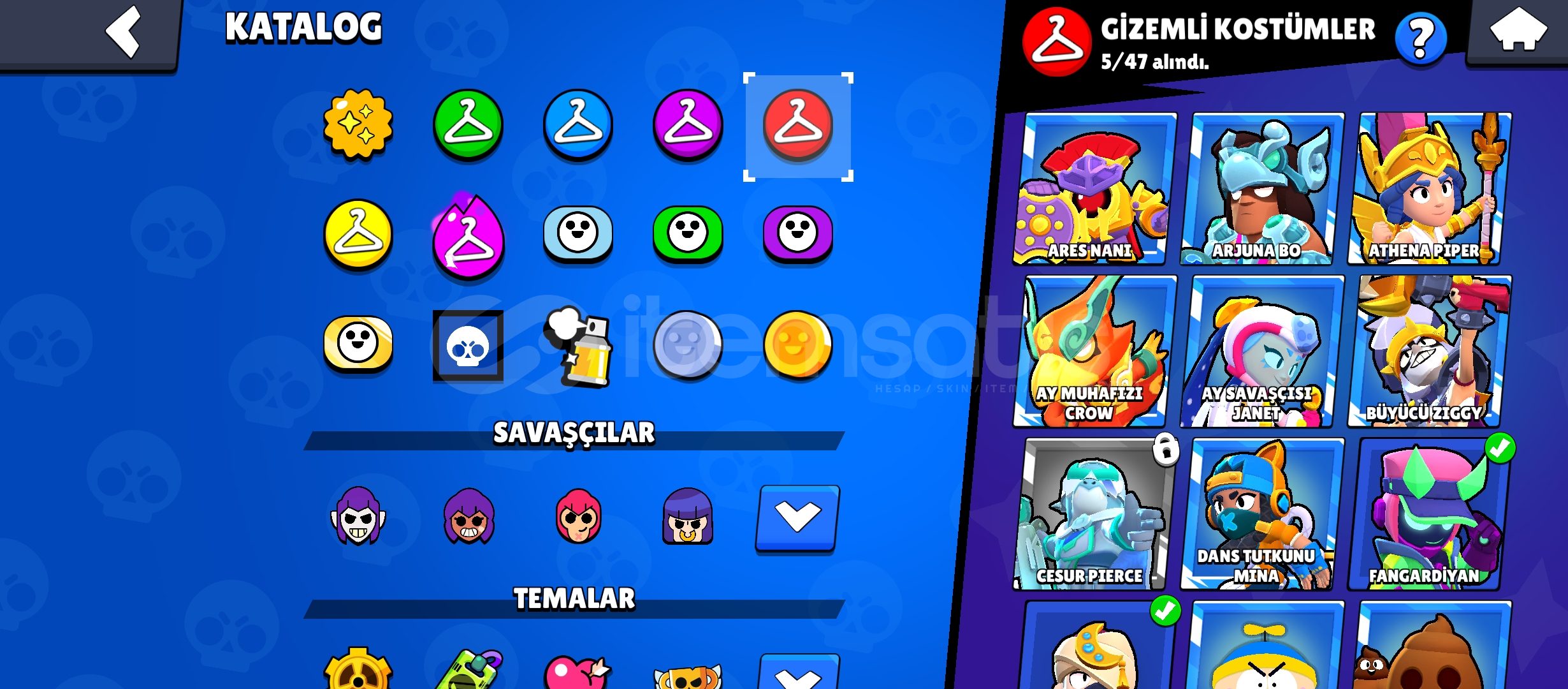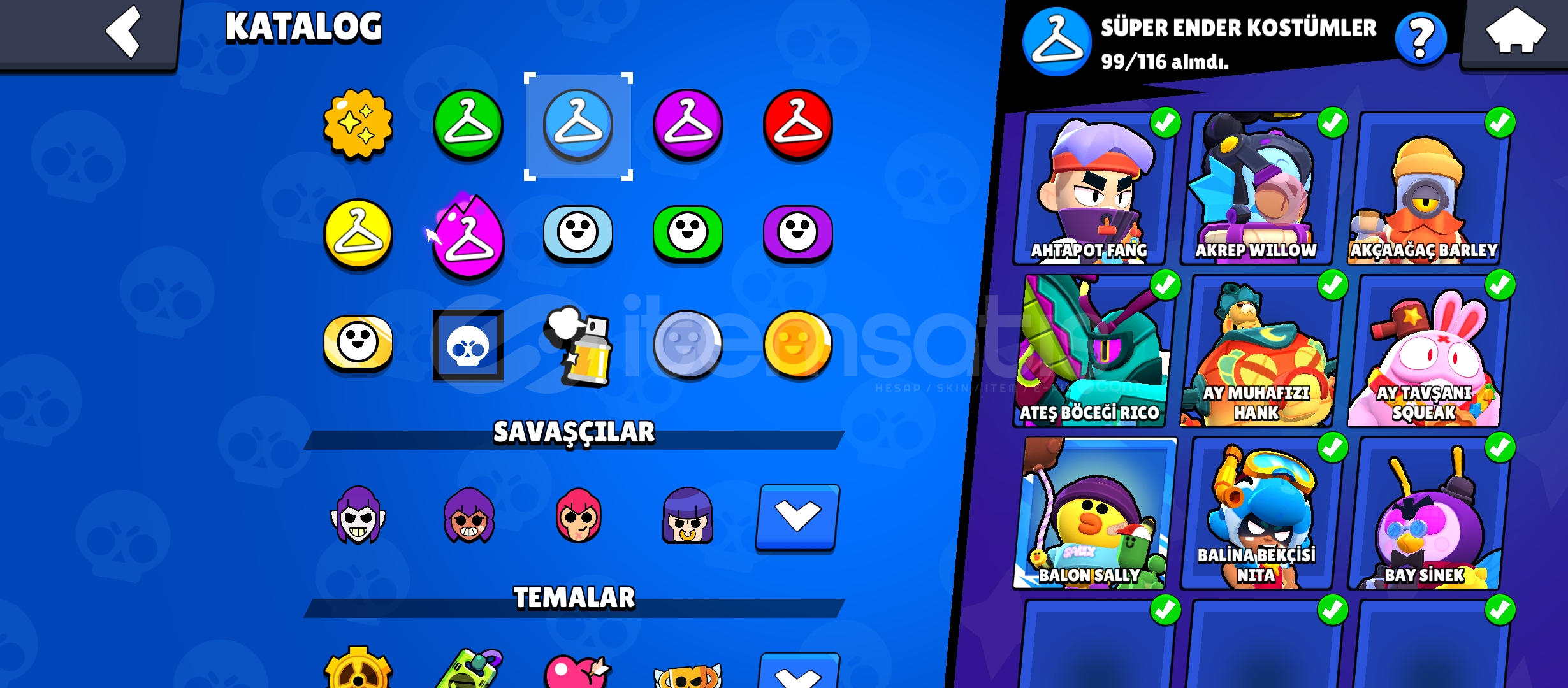 Yanında 12. bb clash of clans.15 tane ünvan, 300+ kostüm, bütün karakterler vardır.