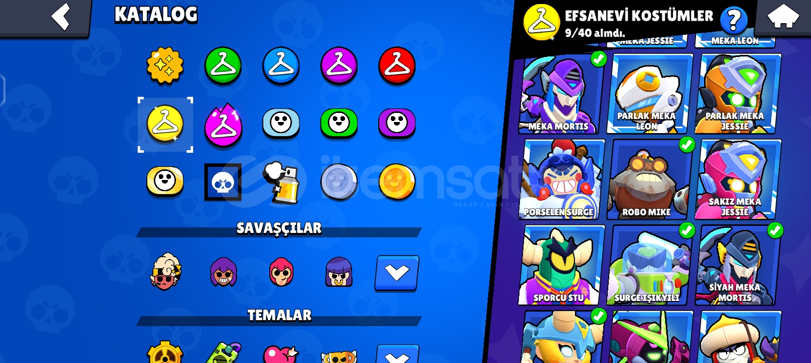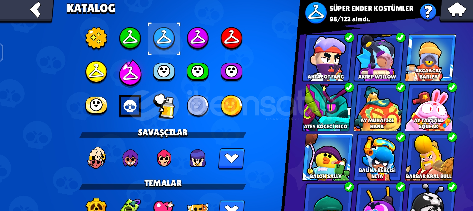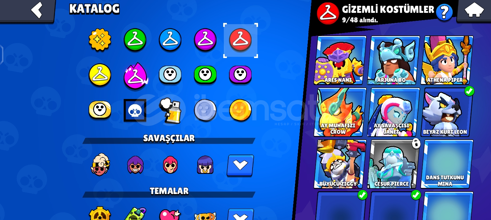*9 efsanevi kostum*9 gizemli kostüm*100 destansı kostum*97 süper ender kostum*87 tane ender kostum2020 hesabı