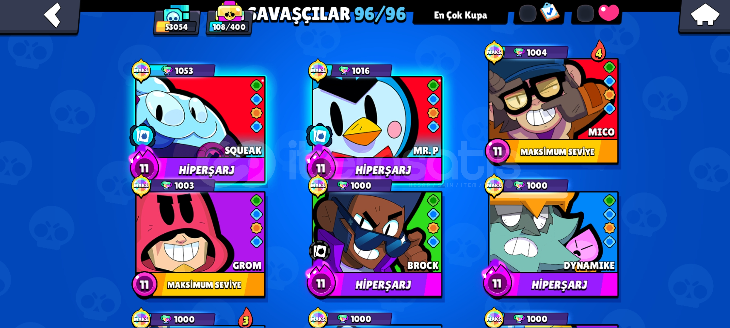 🎮 SATILIK GAMER MARK – FULL BRAWLER HESABI💎 53.000 Kupa | 159 Kostüm | Koleksiyon Seviyesi---✨ Hesap Özellikleri:Tüm karakterler açık: 96/96Toplam Kupa: 53.000 🏆Kostümler:Ender: 64/104Süper Ender: 47/107Destansı: 35/210Gizemli: 7/43Efsanevi: 4/36Hipersarj: 2/2Saf Altın Kostüm: 1/96Rozetler, simgeler ve spreyler: Koleksiyon seviyesinde dolu🔒 Güvenli Devri: Hesap Supercell ID’ye bağl...