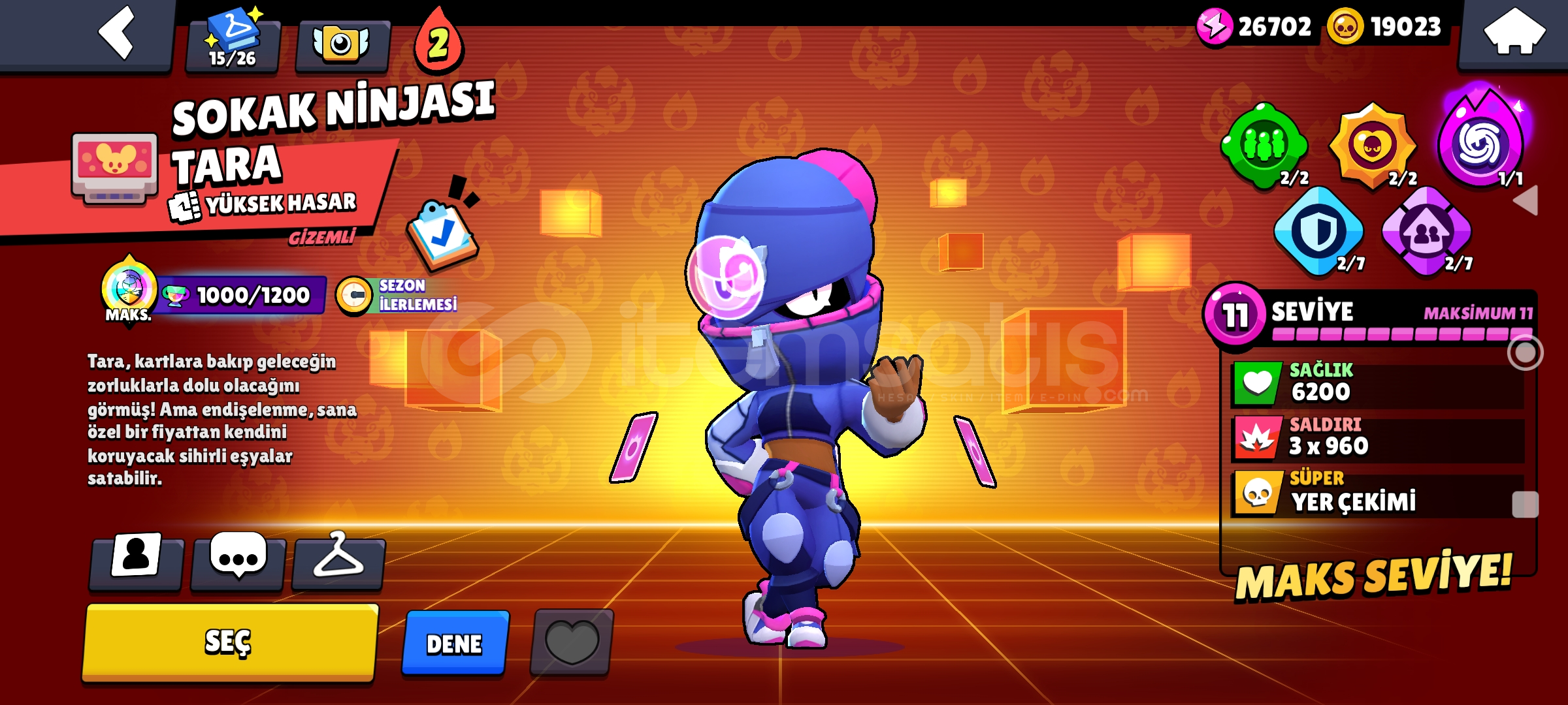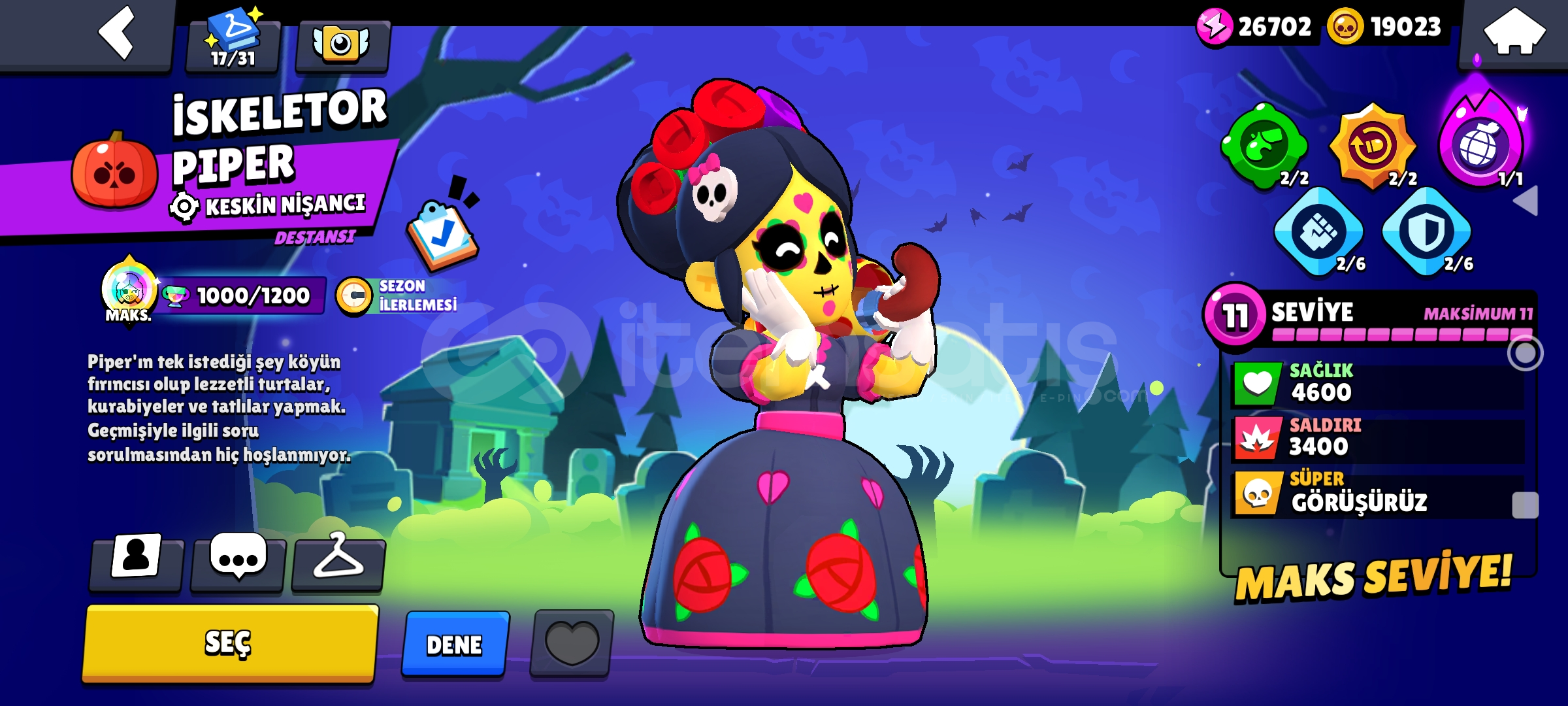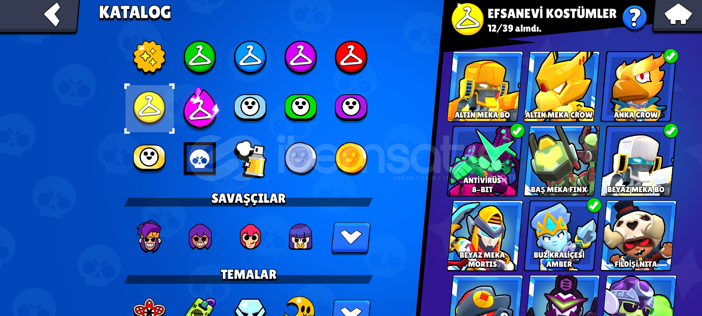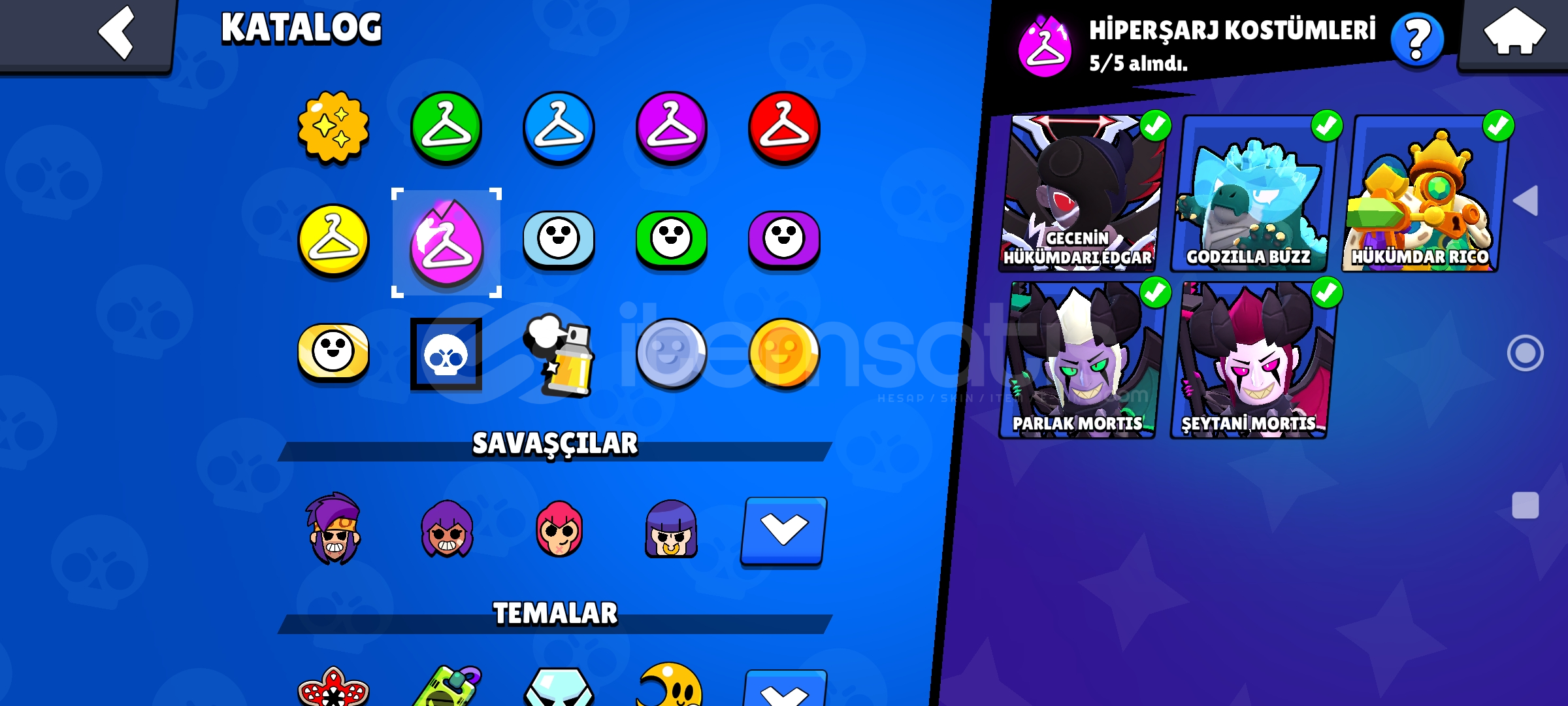 Hesapta 8 brawl pass alınmıştır2019 kuruluşlu Göktaşı Şöhertinde 96 karakter açıktık hepsi 11 level minimum 10 level61 Adet hiperşarz vardır Bütün karakterlerin yıldız gücü aksesuar ve eşyaları nerdeyse vardır👑89 Ender Kostüm119 Süper Ender Kostüm152 Destansı Kostüm13 Gizemli Kostüm12 Efsanevi Kostüm5 Hiperşarj KostümԀ...