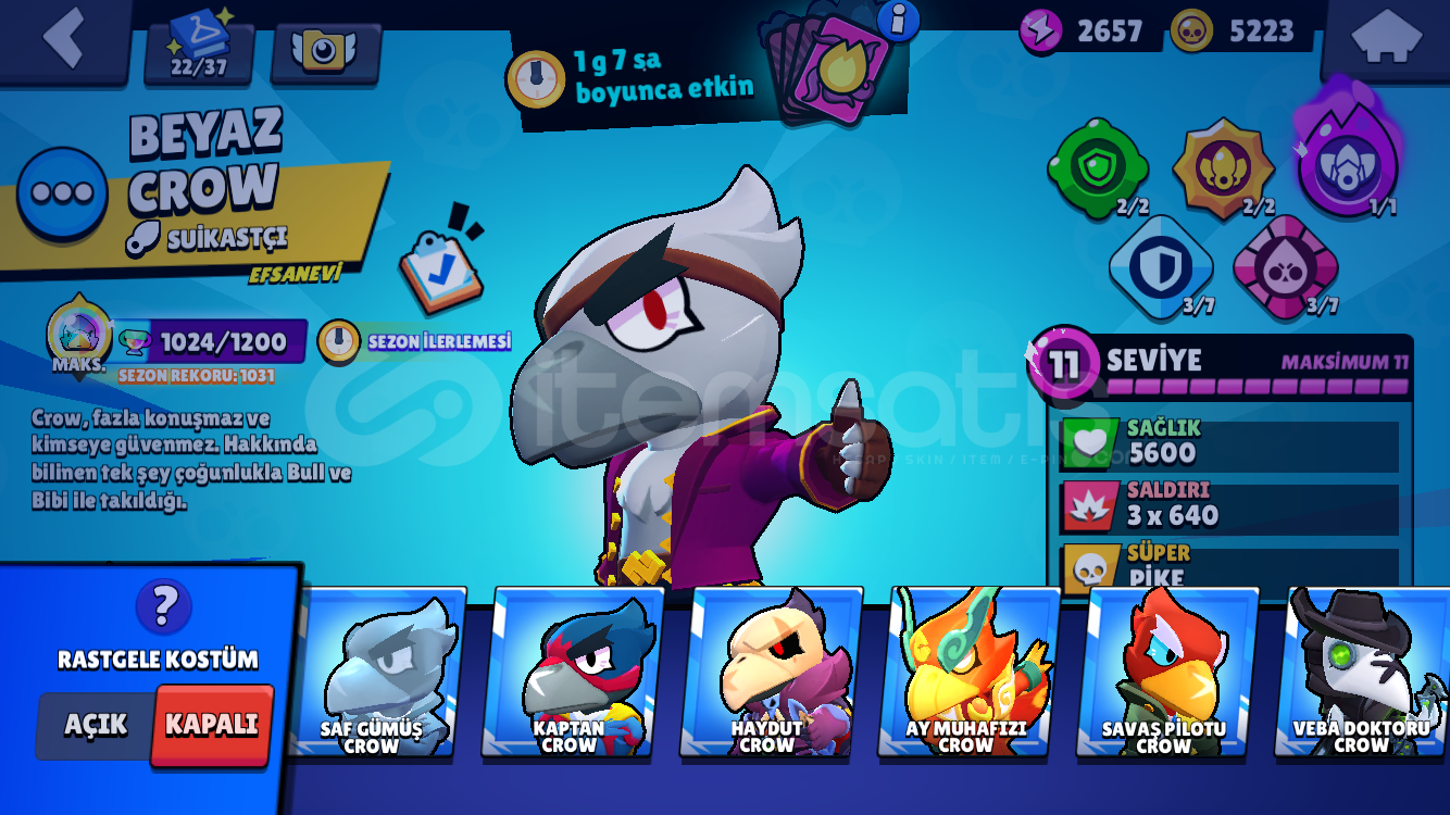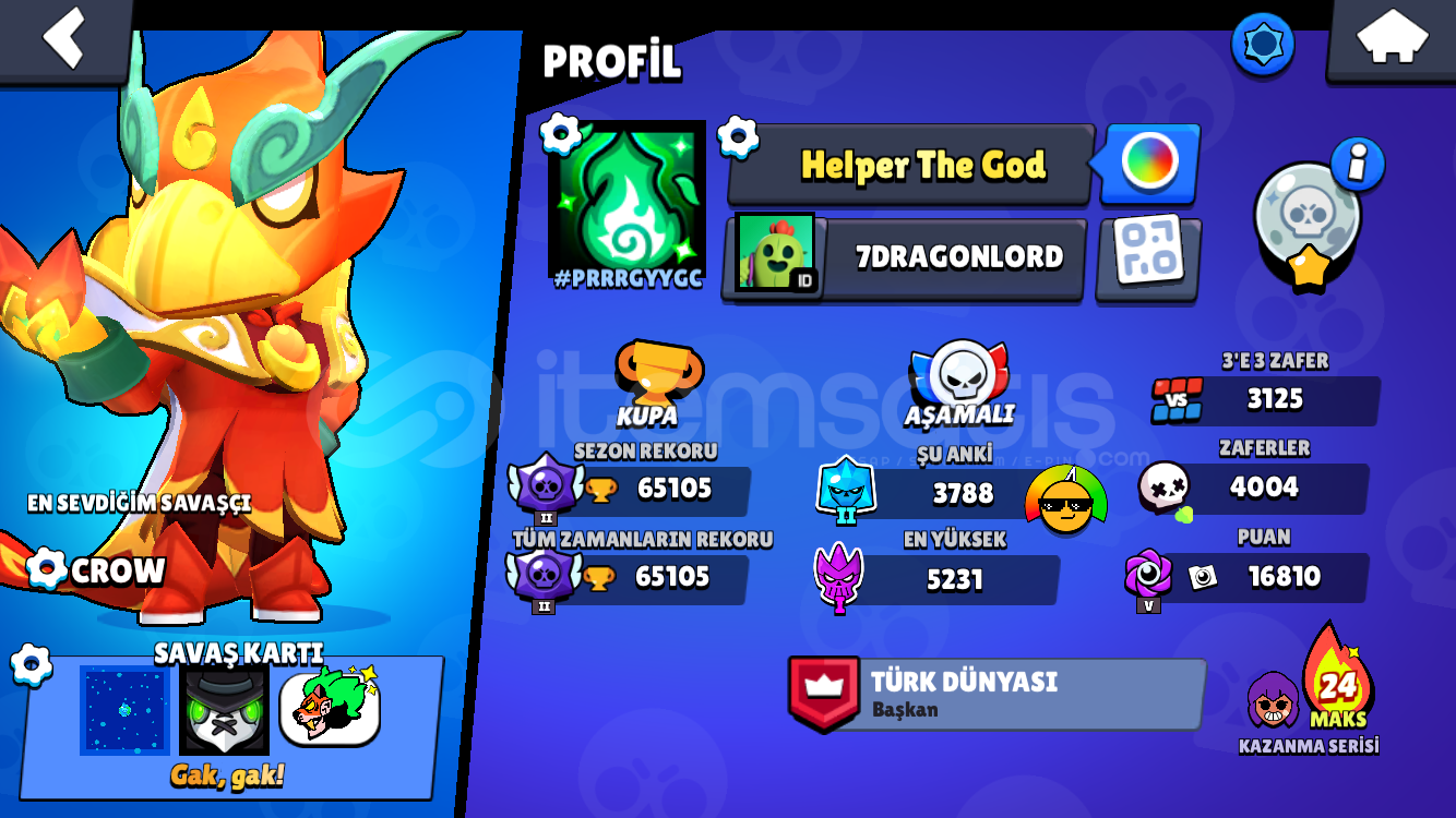 ARKADAŞLAR HESAPTA NEREDEYSE BÜTÜN KARAKTERLERDE ÇOK GÜZEL KOSTÜMLER VARBRAWL PAS PLS AKTİF PRO PASSS AKTİFHesap ile ilgili genel bilgiler;Hesap güncel olarak 65.100 kupaya sahiptir ve hesap içerisinde bütün karakterler mevcuttur. hesaptaki en düşük seviyeli karakter 8 seviyedir. Hesap içerisindeki kostüm sayısı;73 ENDER41 SÜPER ENDER47 DE...