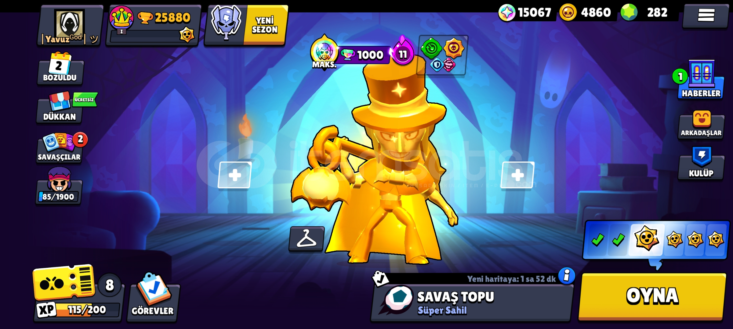 beyler/bayanlar oyunu oynamıyorum nasibi olana gider şimdiden hayırlı olsun108 skin282 elmas15000 mücevher26.000 kupa