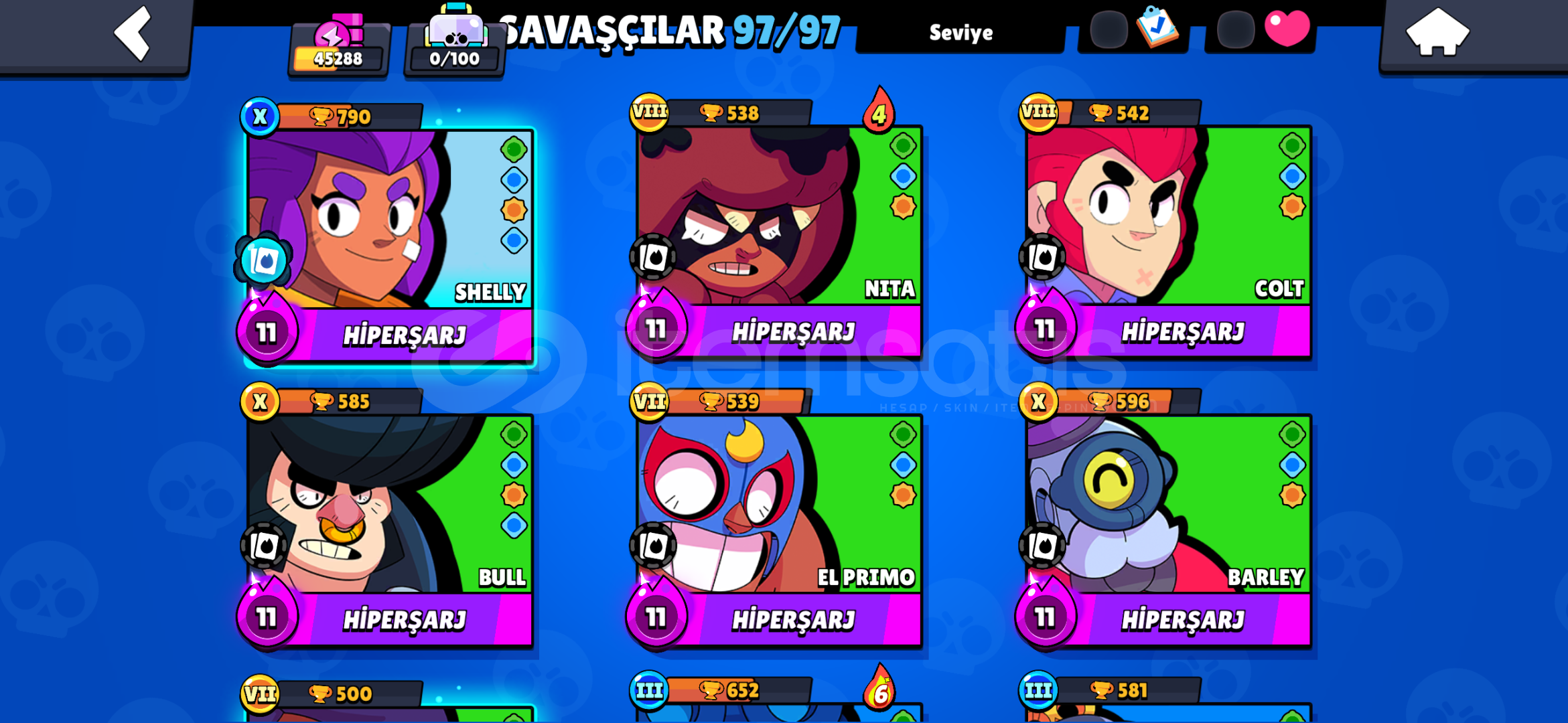 Bütün karakterler açık olup yeni gelen Gigi karakteri hariç bütün karakterler 10-11 seviyedir çoğunun hiperşarjı açıktır kısaca dolu dolu hesaptır alanın pişman olmayacağı bir hesap alıcısına şimdiden hayırlı olsun