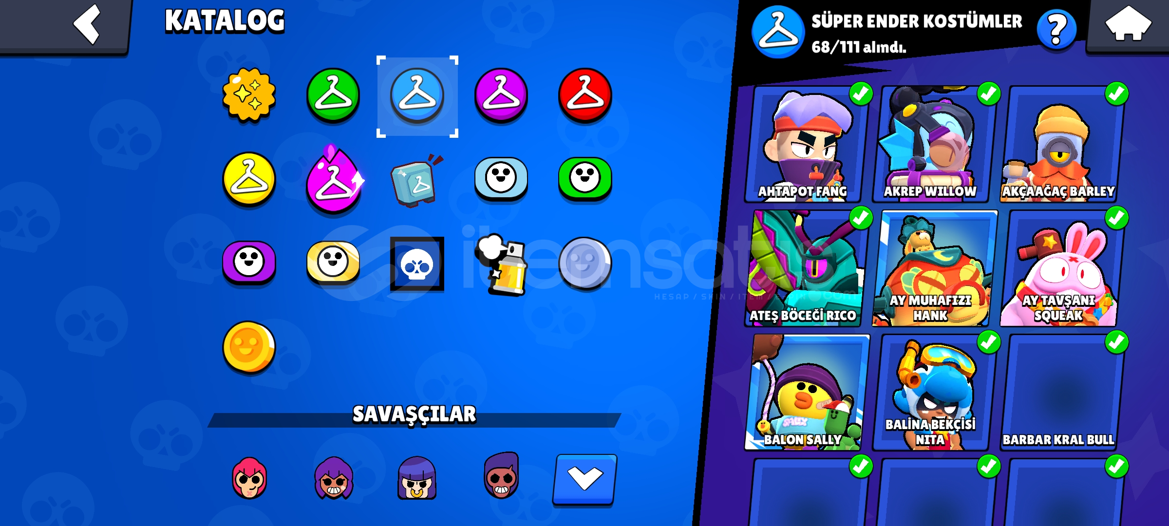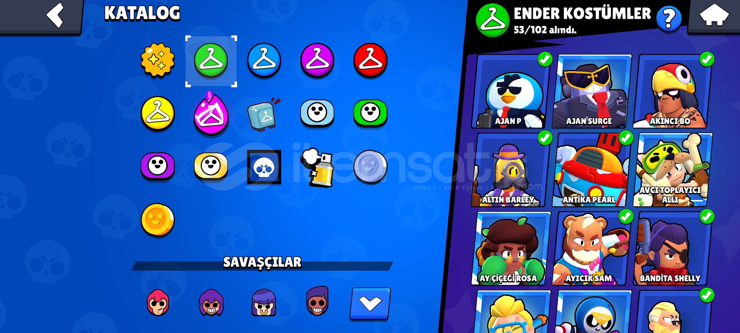 İçinde nadir kostüm vardır yaklaşık 400 elmas var karakterler full dünya şöhreti var 50k üstü
