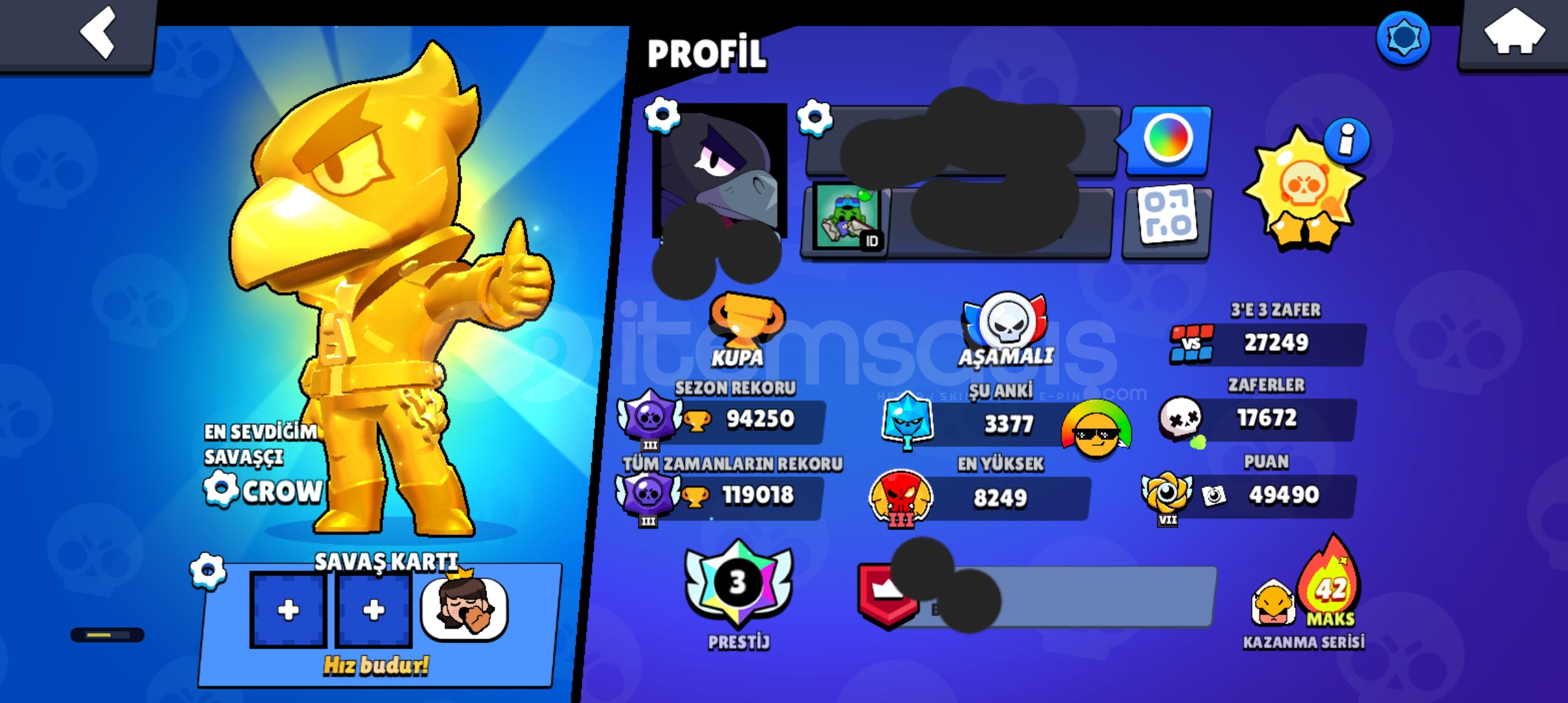 🔹 En Yüksek Kupa:119.018🔹 Güncel Kupa:94.121🔹 3v3:27240🔹 Karakter Sayısı:95🔹 11 Seviye Sayısı:95🔹 Hiperşarj Sayısı 59🔹 Kaç 35 Rank:1🔹 Eski Sistem Pl Bilgisi:🔹 2024 Master Sayısı: 0🔹 2025 Master Sayısı:0🔹 Ünvan Sayısı (Bp\Ustalık):32🔹 Şöhret:Güneş 2🔹 Hesaba Özel Brawl Pas Fiyat&#...