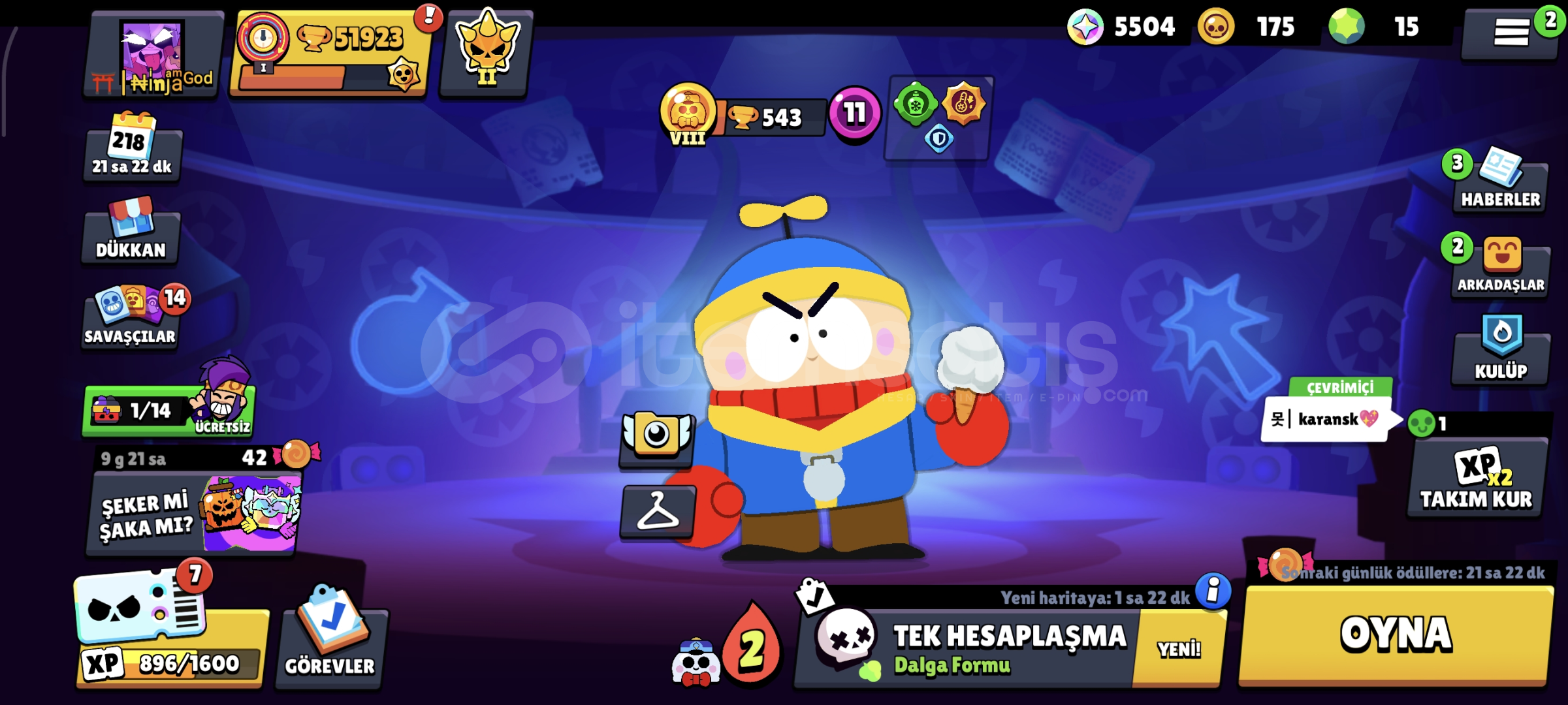 Brawl stars artık benim gözümde bitmiştir buraya kadar emeklerim yatirdiğim paranin düşük fiyatina satmaya karar verdim artık içimdeki zevk söndü buraya kadarmış kurtlar vadisi operasyonu sona ermiştir 5 plus 3 pass 3 gümüş kostüm 1 altın kostüm