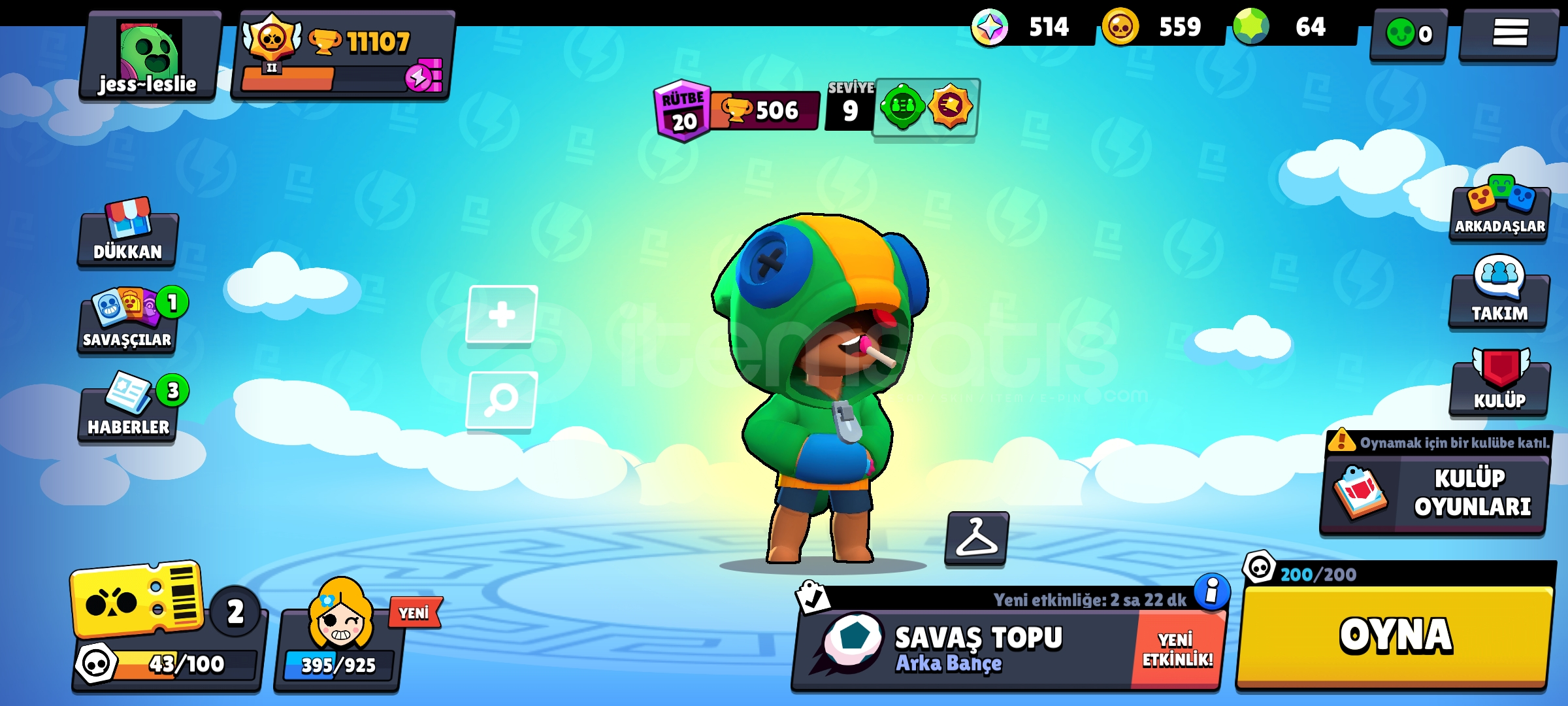 Hesapta 64 taş vardır11000 kupası vardır42 karakteri 3 efsanevisi vardırTek bağ supercell id dırAlıcısına hayırlı olsun