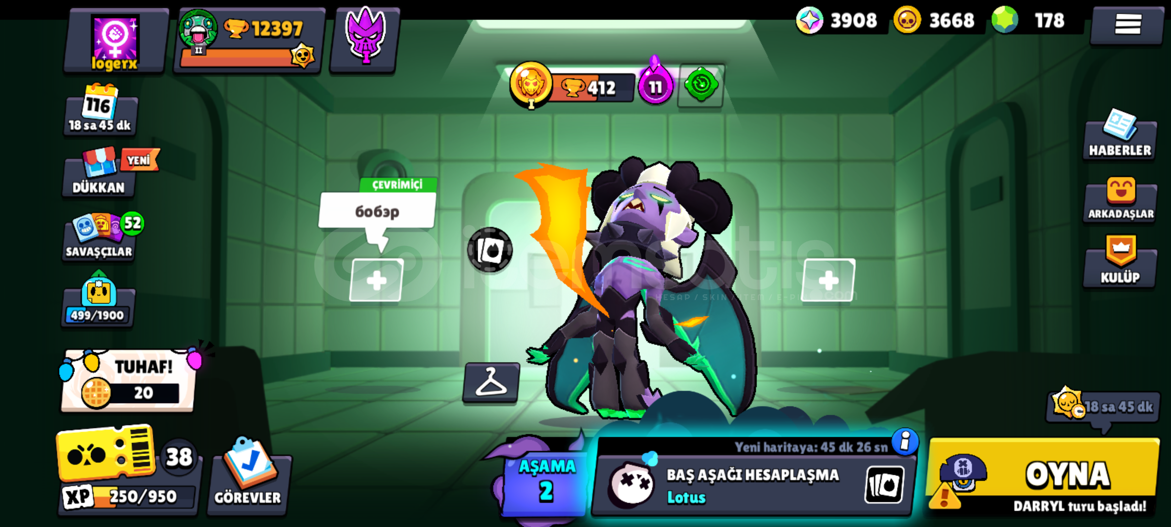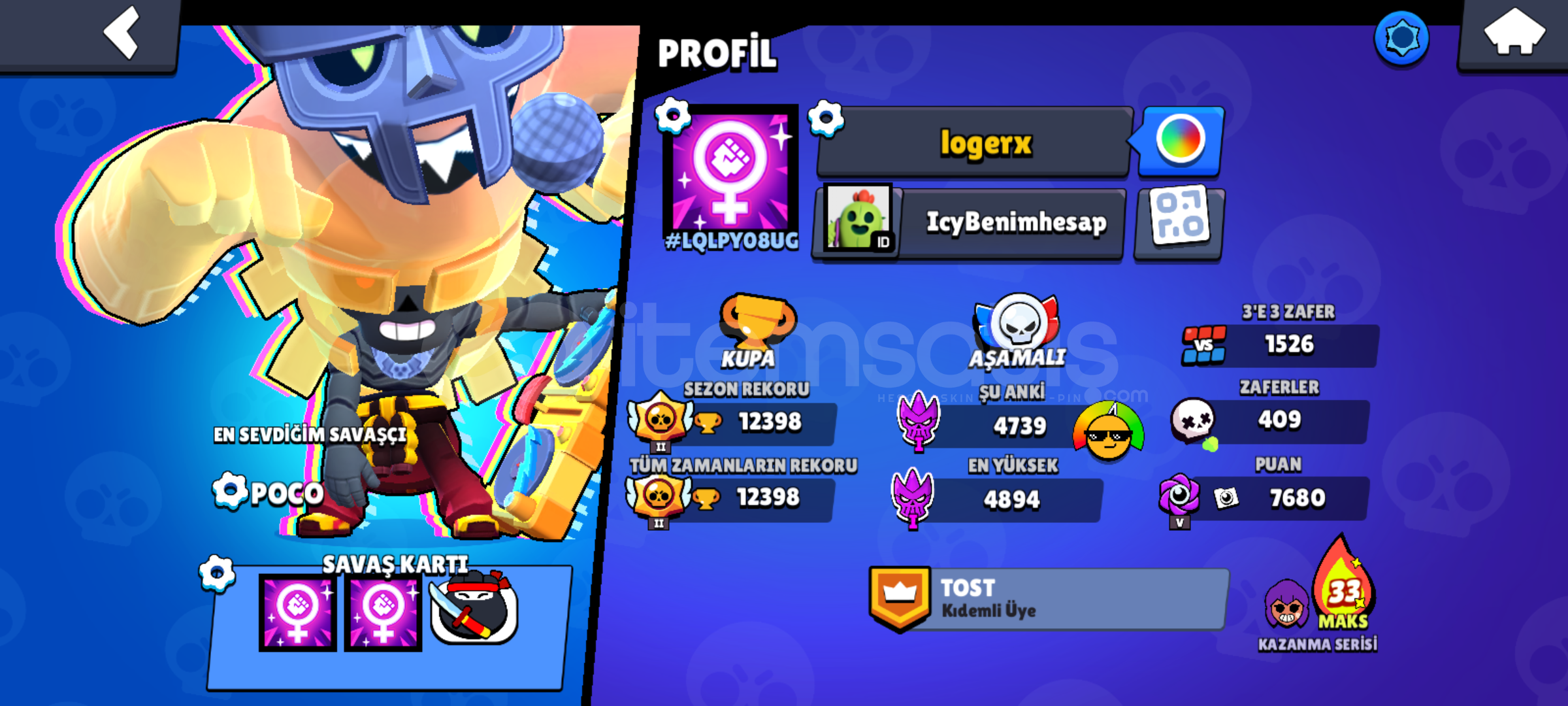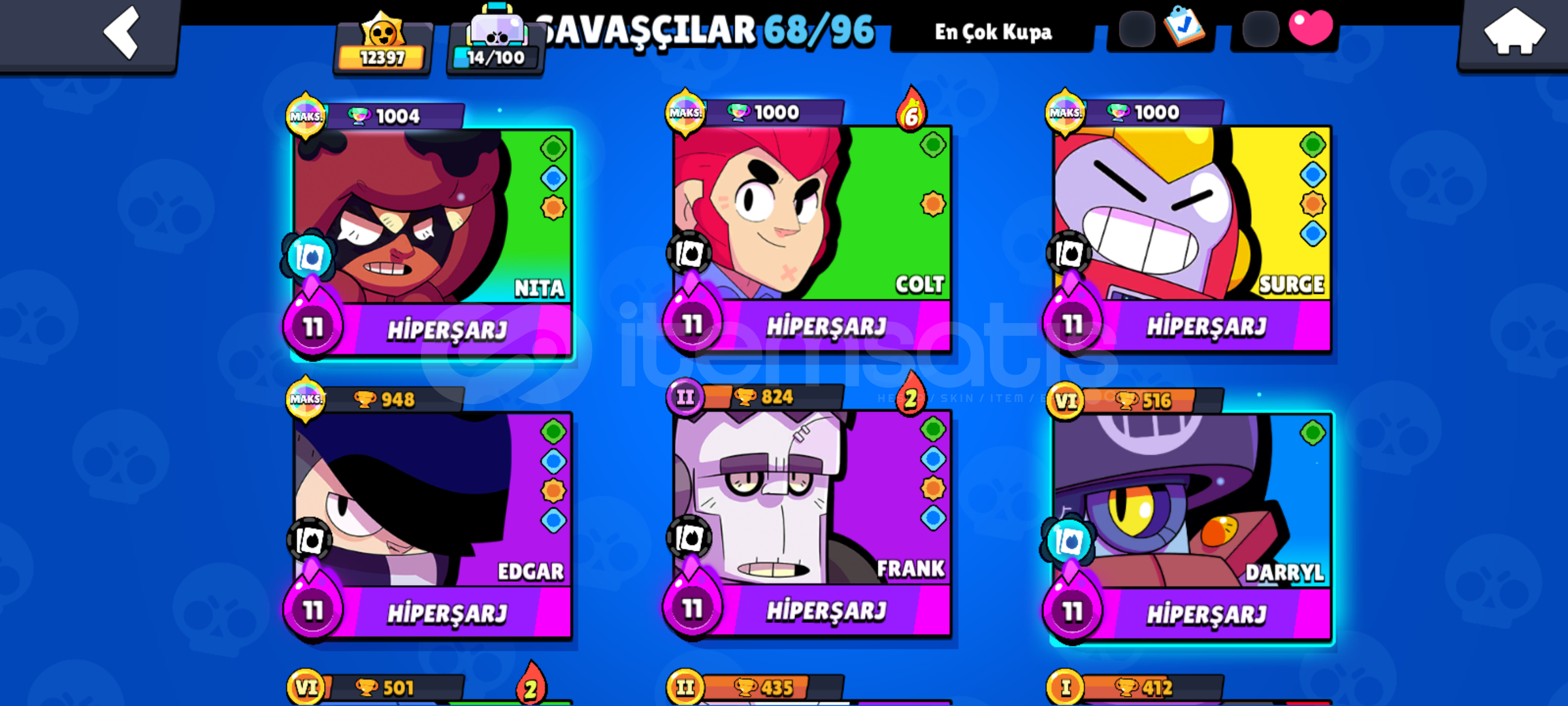 178 taşlı hesapHesapta güzel kostümler vardır16 tane hiperşarj vardır3 karakter 1000 kupadır68 karakterlidirHe...