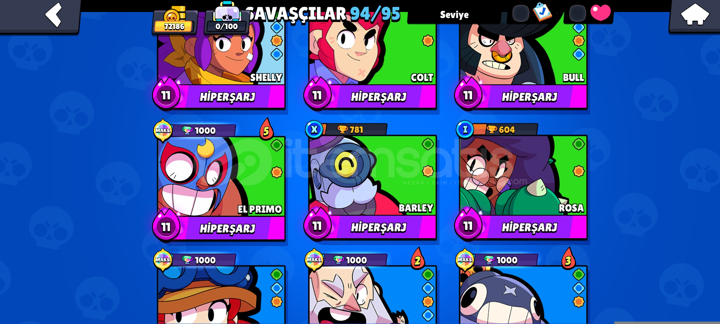 Hesap 72 k dır 8 tane hiperşarj kodtümü vardır nadir kostümler vardır oyunu bırakacağım için satıyorum