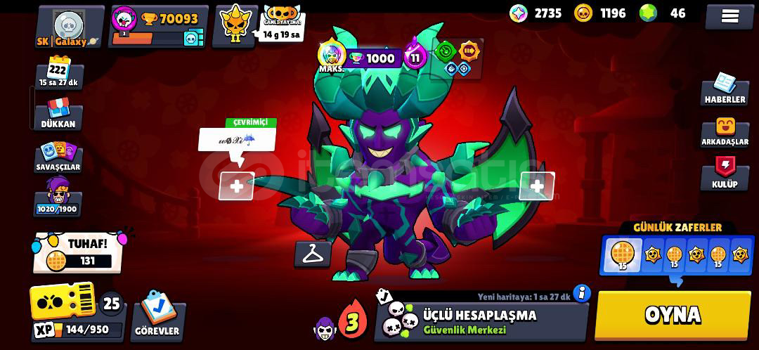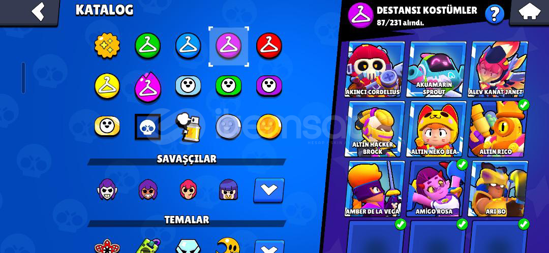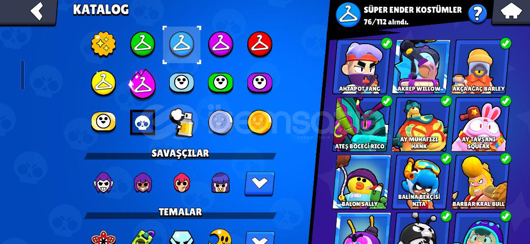 Hesap göründüğü gibidir 70 K dır bir sürü kıyafet vardır çöpü nadirdir tüm karakterler açık sayılır böyle hesap bulunmaz sitenin en iyisi alana hayırlı olsun üstünüze devredilir yazmanız yeter