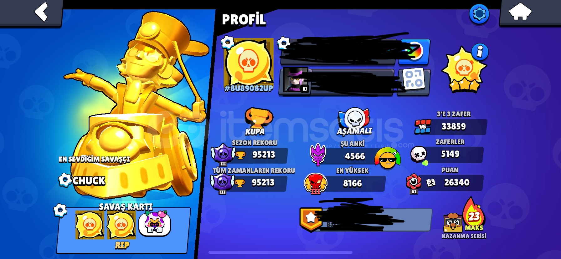 HESAPTA HER ŞEY MAKSTIR33K 3v3 ü vardır65HİPERŞARZ VARDIR40K GÜC PUANI100K ALTIN BULUNMAKTADIRPRO PASS AÇIKTIRDOUG VE CHUCK UN ALTIN KOSTUMLERI VARDIR+300DEN FAZLA KOSTUM VARDIRGÜNEŞ ŞÖHRETİ 3TÜR NERDEYSE METEOR OLCAKTIRSİTENİN EN İYİ HESABIUFAKTA OLSA PAZARLIK VARDIRTEKLİFLERE AÇIGIZ