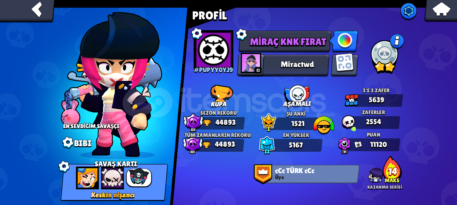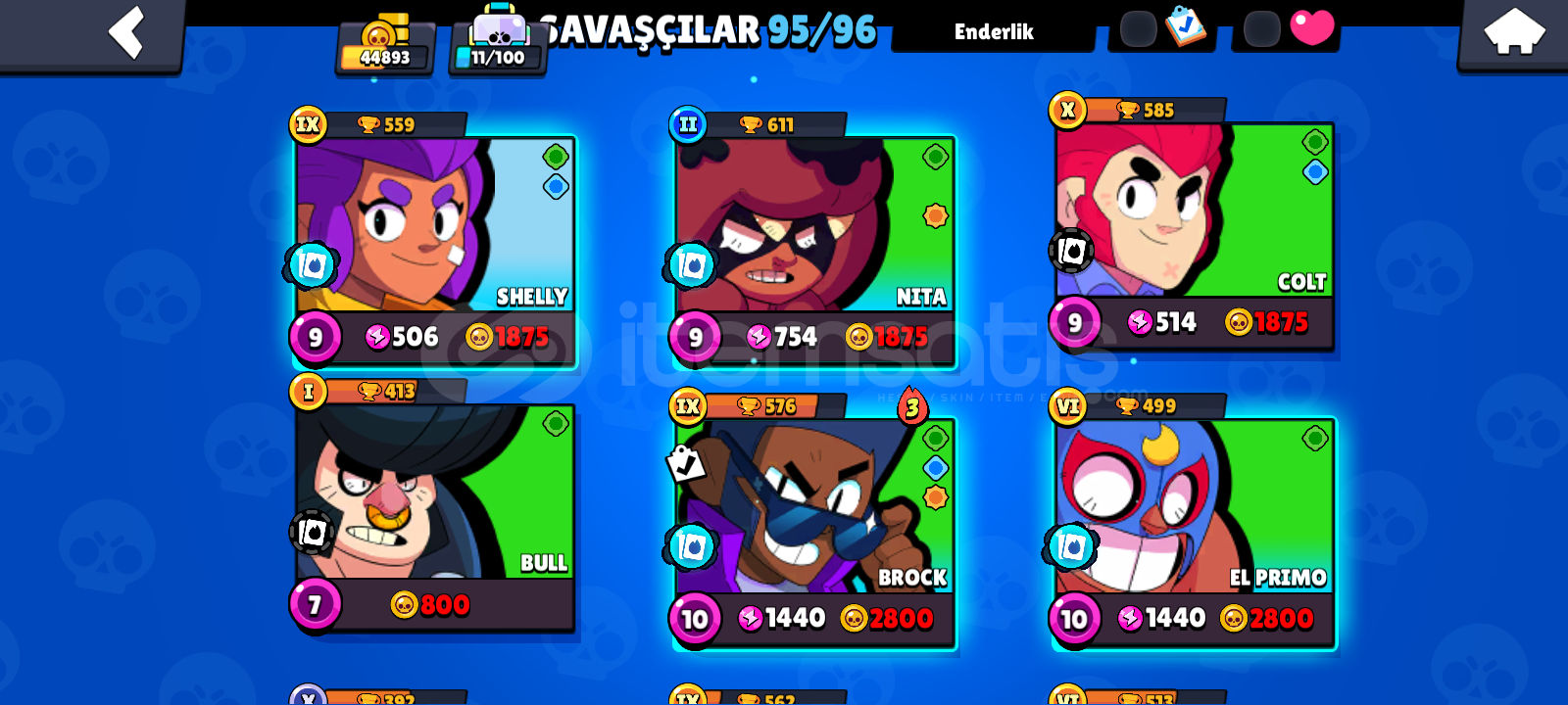 45. Kupalık hesap Ziggy hariç tüm karakterler var her karakterein kostümü var birden fazla 5 yıllık hesap ve brawl pass kostümleri dahil