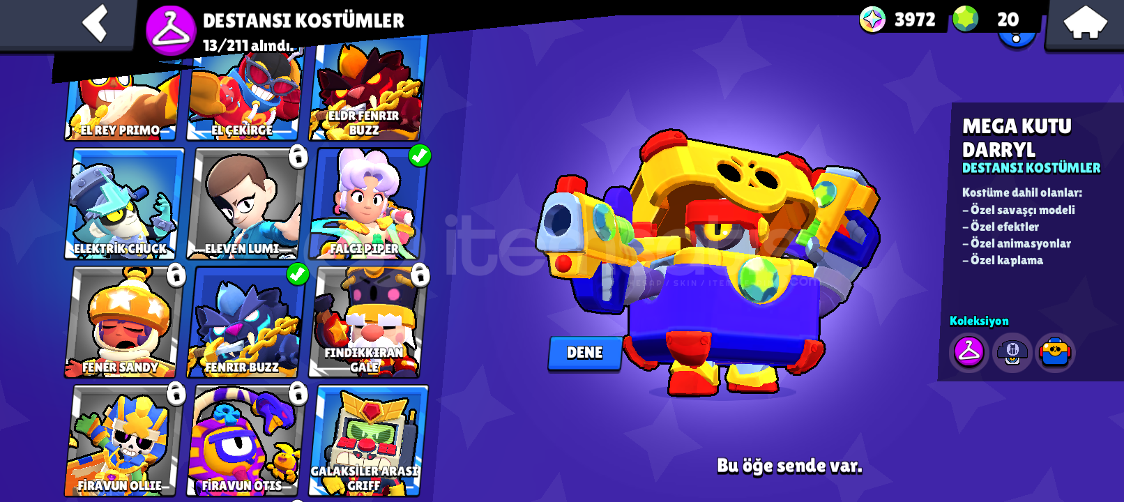 ÖNCELİKLE MERHABA2020 DE KURULMUŞ HESAPDEĞERLİ KOSTÜMLER TENGU ANGELO-UZAY BOĞASI BULLNADİR KOSTÜMLERBARBAR BULL-RETRO BROCK-YARIŞCI CARL-MEGA KUTU DARL-OMEGA DARLNASIL TESLİM EDİLİRMAİL DEĞİŞİM VEYA MAİL DEVİR EDECEĞİZALANA ŞİMDİDEN HAYIRLI OLSUN