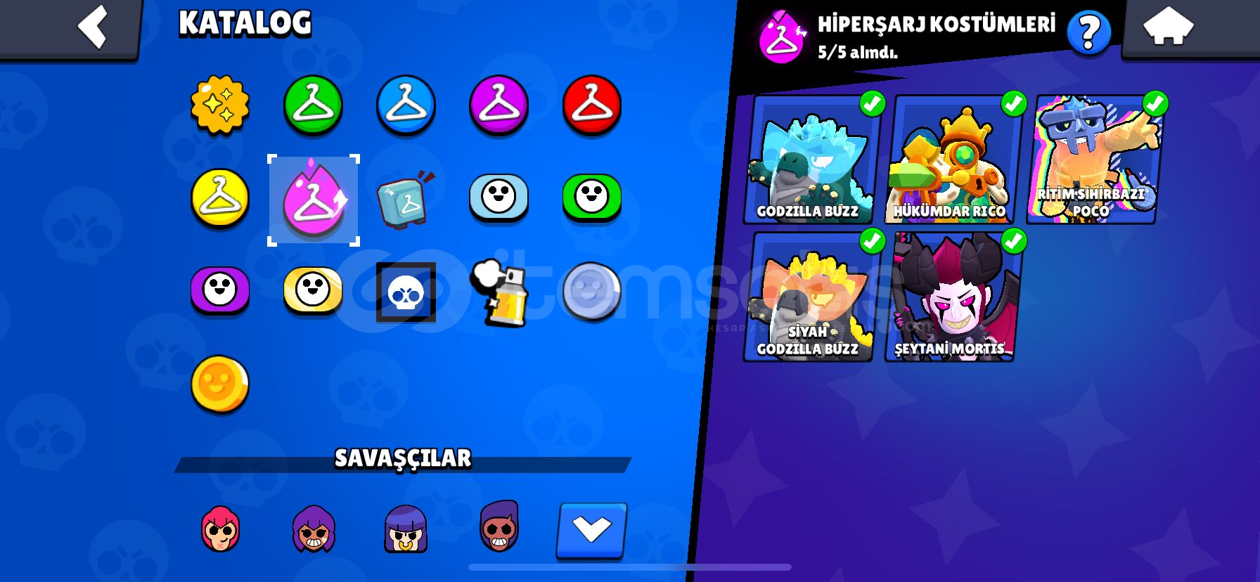 Hesapta 8 efsanevi vardır 15 efsanevi vardır 53 ender kostüm 32 süper ender kostüm37 destansı kostüm5 gizemli kostüm 4 efsanevi kostüm 5 hiparşarj kostümü vardırToplam 64 savaşçı15k KupaMERAK ETTİKLERİNİZİ BANA YAZABİLİRSİNİZ