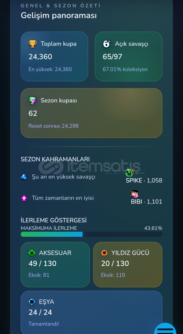 ⭐24 bin kupaÇoğu karakter var değerli hesap ⭐BİLGİ ALMAK İÇİN MESAJ ATABİLİRSİNİZ ⭐KOZMETİK DEĞER 62bin Elmas ⭐BİBİ 1001KUPA⭐İLK YAZAN A İNDİRİM OLUR