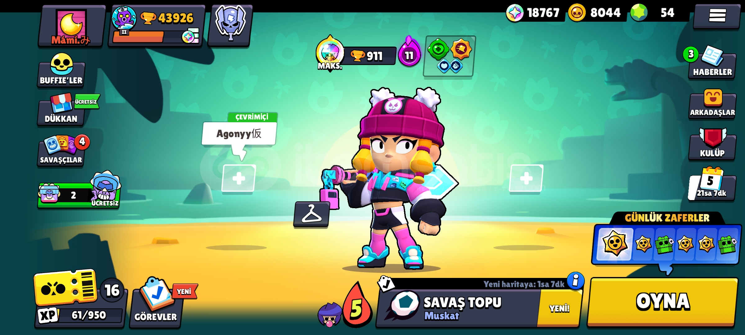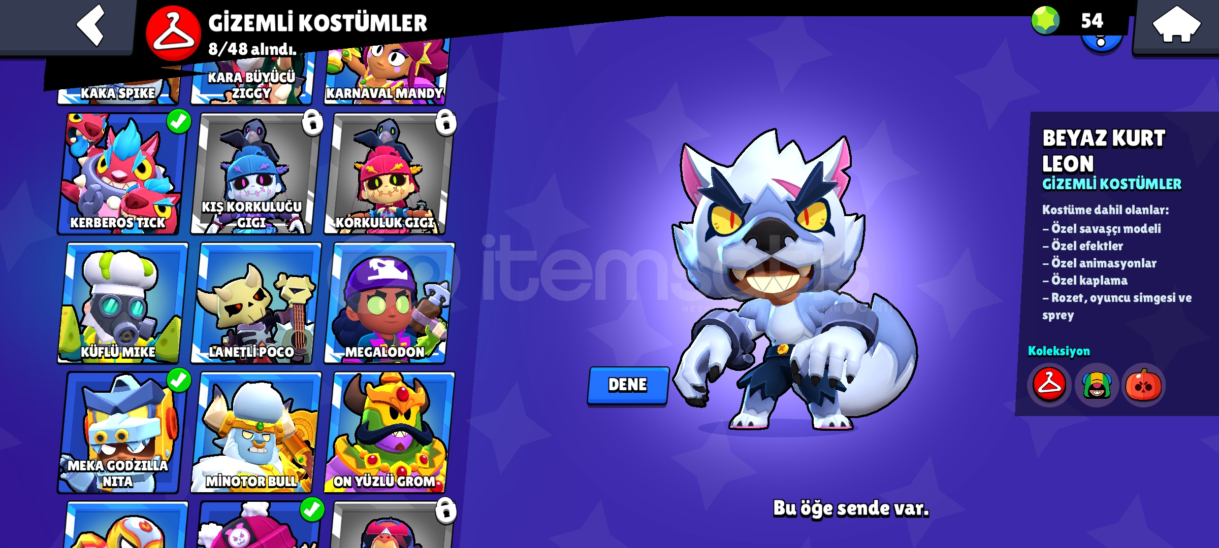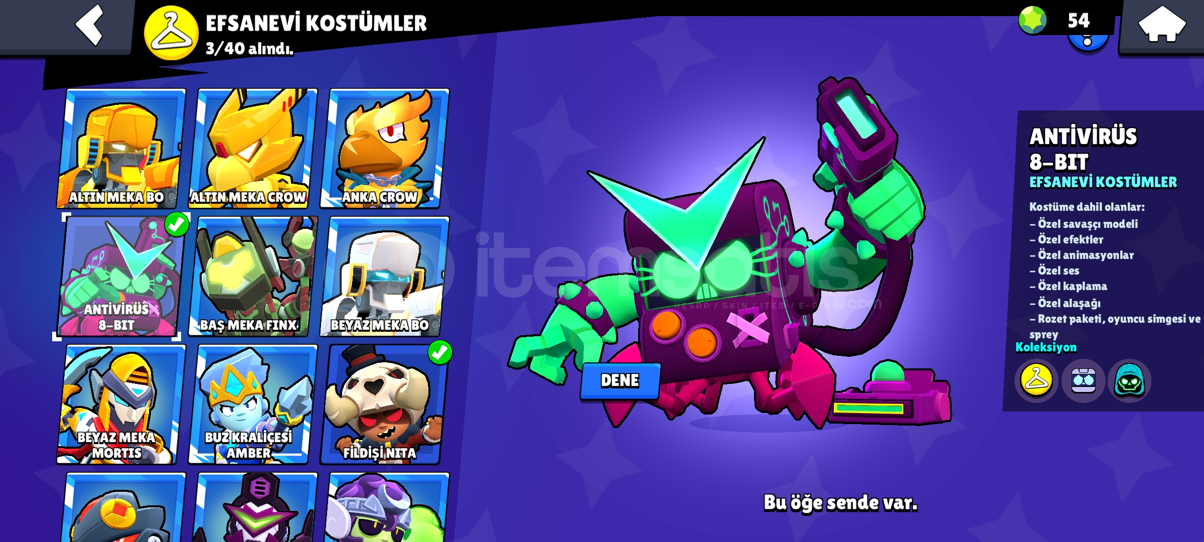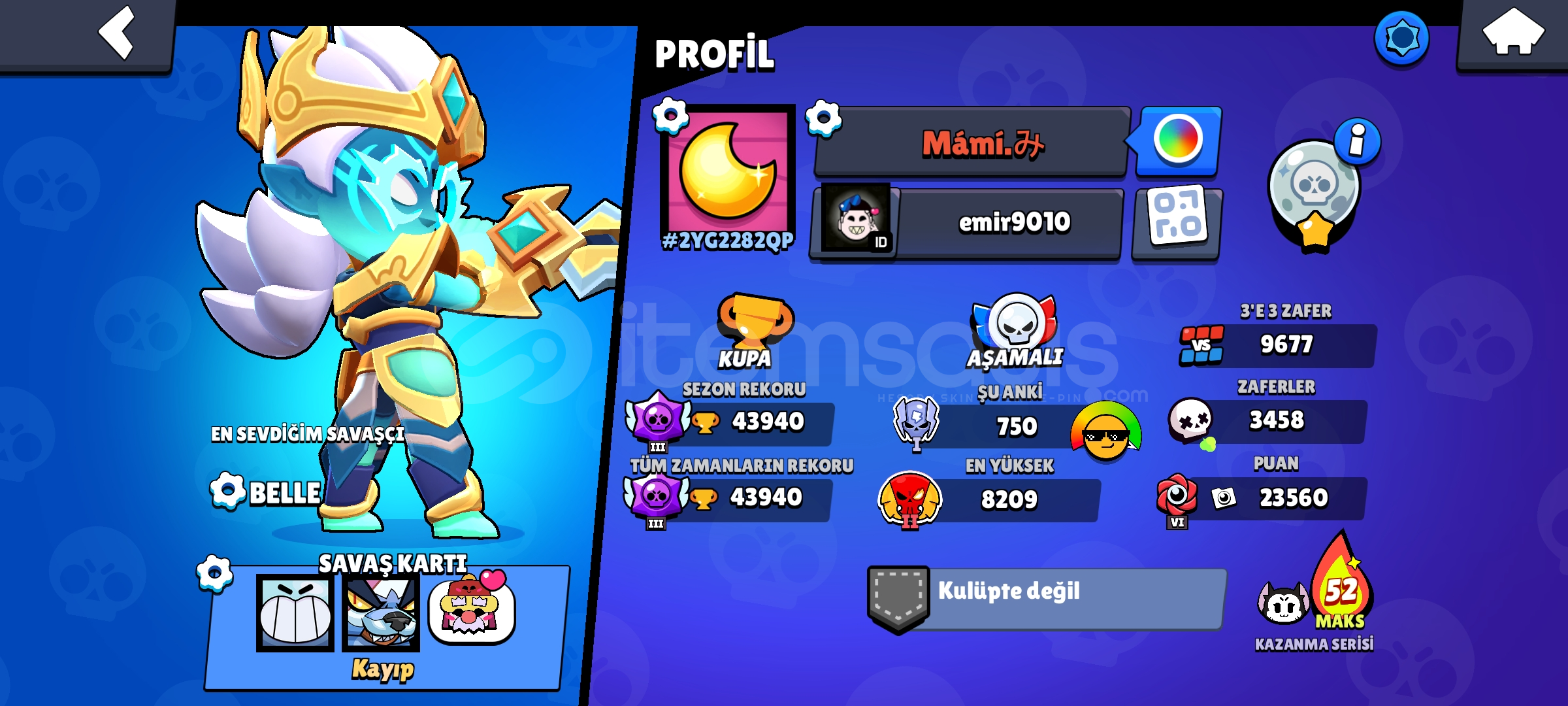 96 KARAKTER 43K+ KUPA 264 KOSTÜM5 Tane Nadir KostümSezon 1 Kostümü Tüccar GaleSezon 2 kostümü şövalye surgeSezon 3 kostümü Süper ranger brockTıknaz Darryl (oyuna birdaha gelmiyor)Antivirüs 8-bıt exclusive kostüm28 Hiperşarjlı, Toplam 36 Maksimum Seviye82 Ender Skin79 Süper Ender Skin84 Destansı Skin8 Gizemli Skin3 Efsanevi Skin4 Hiperşarz SkinHESAP YAKIN FİYAT OLAN HESAPLARDAN DAHA FAZLA...