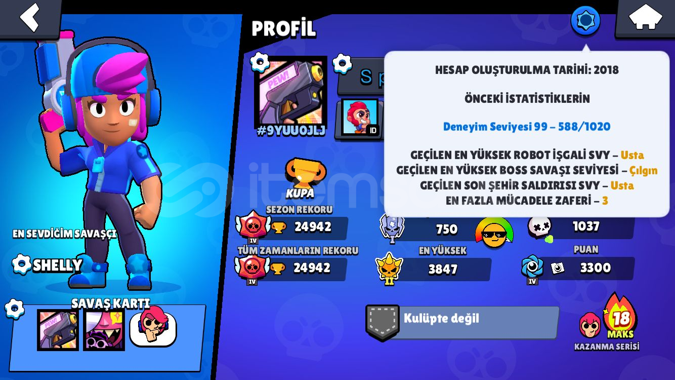 Hesabımız 2018 Kurulumludur.Hesapta Oyunun En Nadir Skinleri Aynı Hesaptadır.Koleksiyoncular İçin Servet Bir Hesaptır.Bütün Bilgiler Sizin Üzerinize Yapılcaktır.Mücadeleci ColtYıldız Shelly 2018