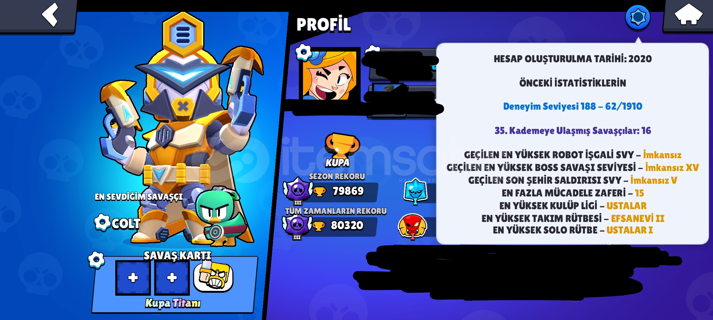 Kupa titani bol 35 rütbeli old pl master hesap