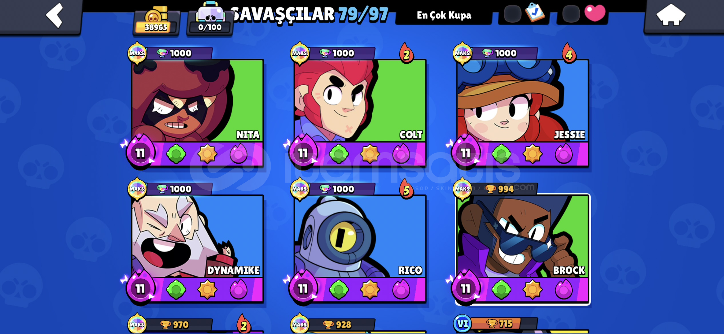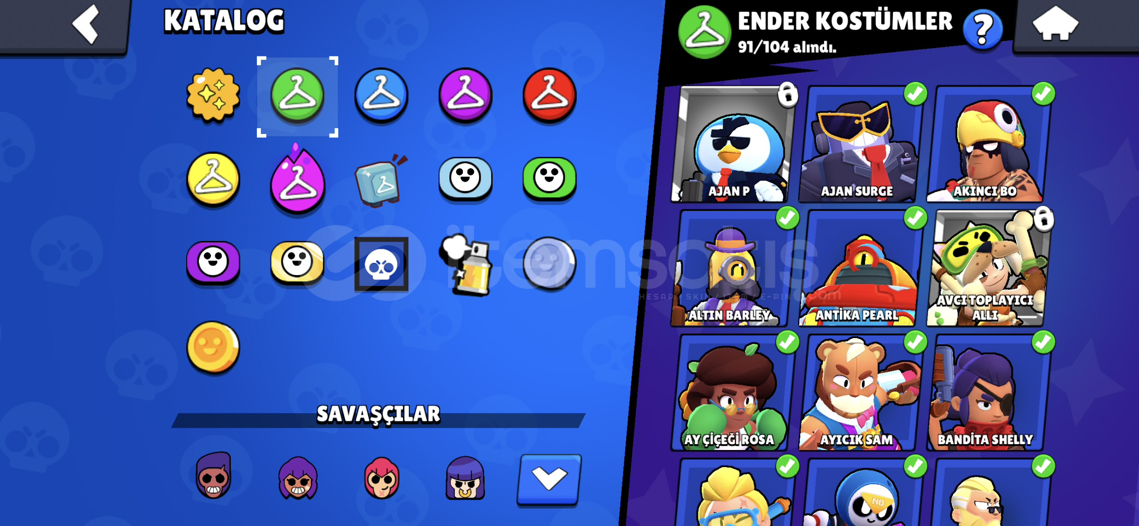 Hesap içerisinde 79 karakter, 27 hiperşarj, 91 ender kostüm, 97 süper ender, 85 destansı, 5 gizemli, 2 efsanevi ve 1 hiper&...