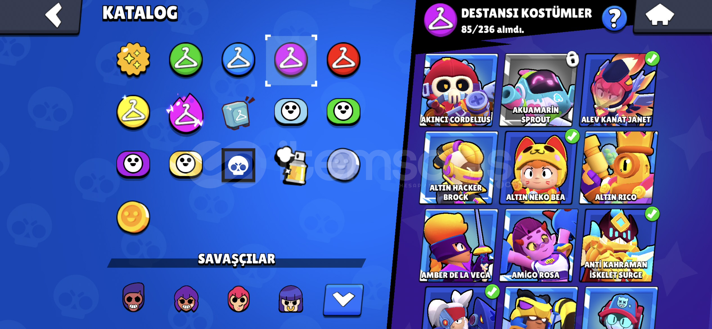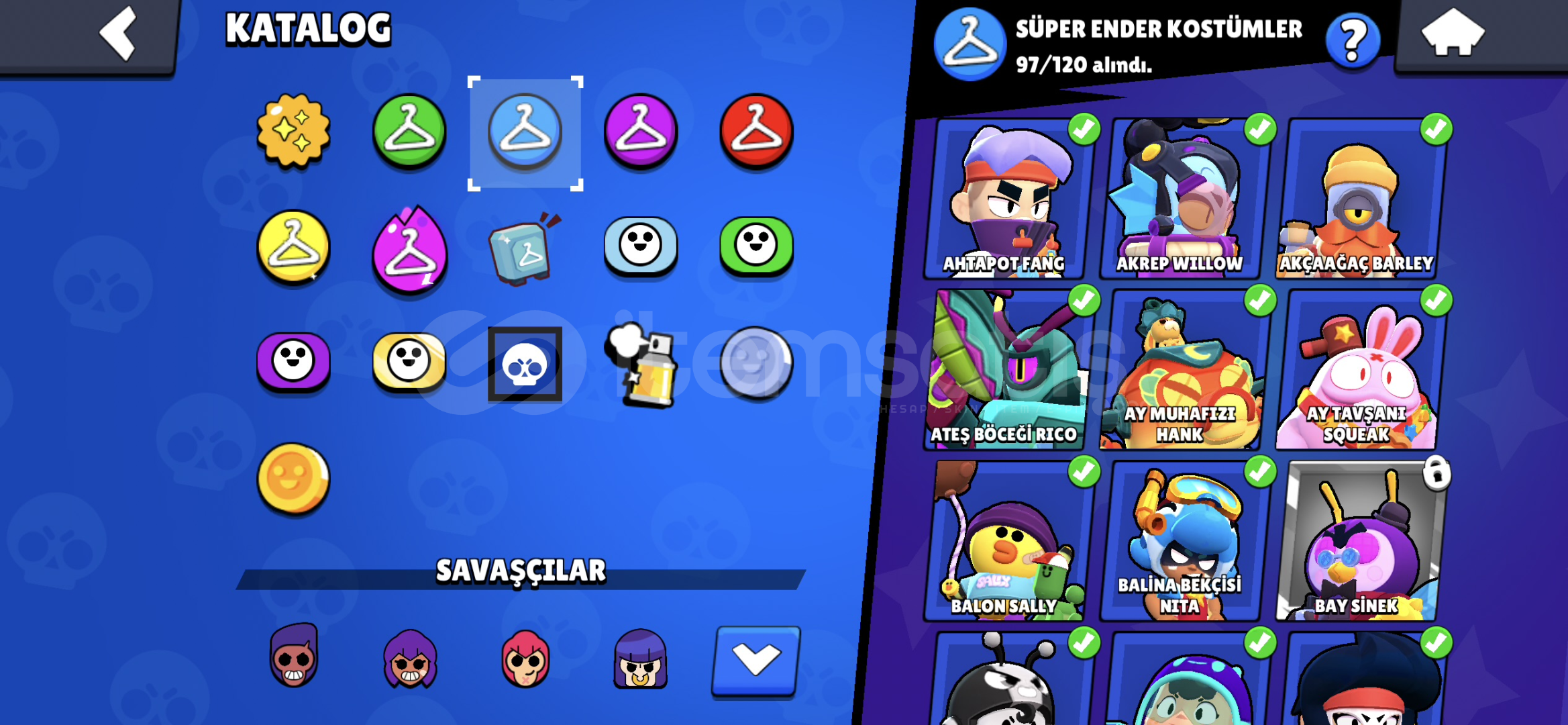 Hesap içerisinde 79 karakter, 27 hiperşarj, 91 ender kostüm, 97 süper ender, 85 destansı, 5 gizemli, 2 efsanevi ve 1 hiperşarj kostüm vardır. Mail bana ait ilanı satın alan kişi için istediği maille değiştireceğim. 10 efsanevi karakter, 21 gizemli, 29 destansı, 10 süper ender, 8 ender karakter bulunamktadır.