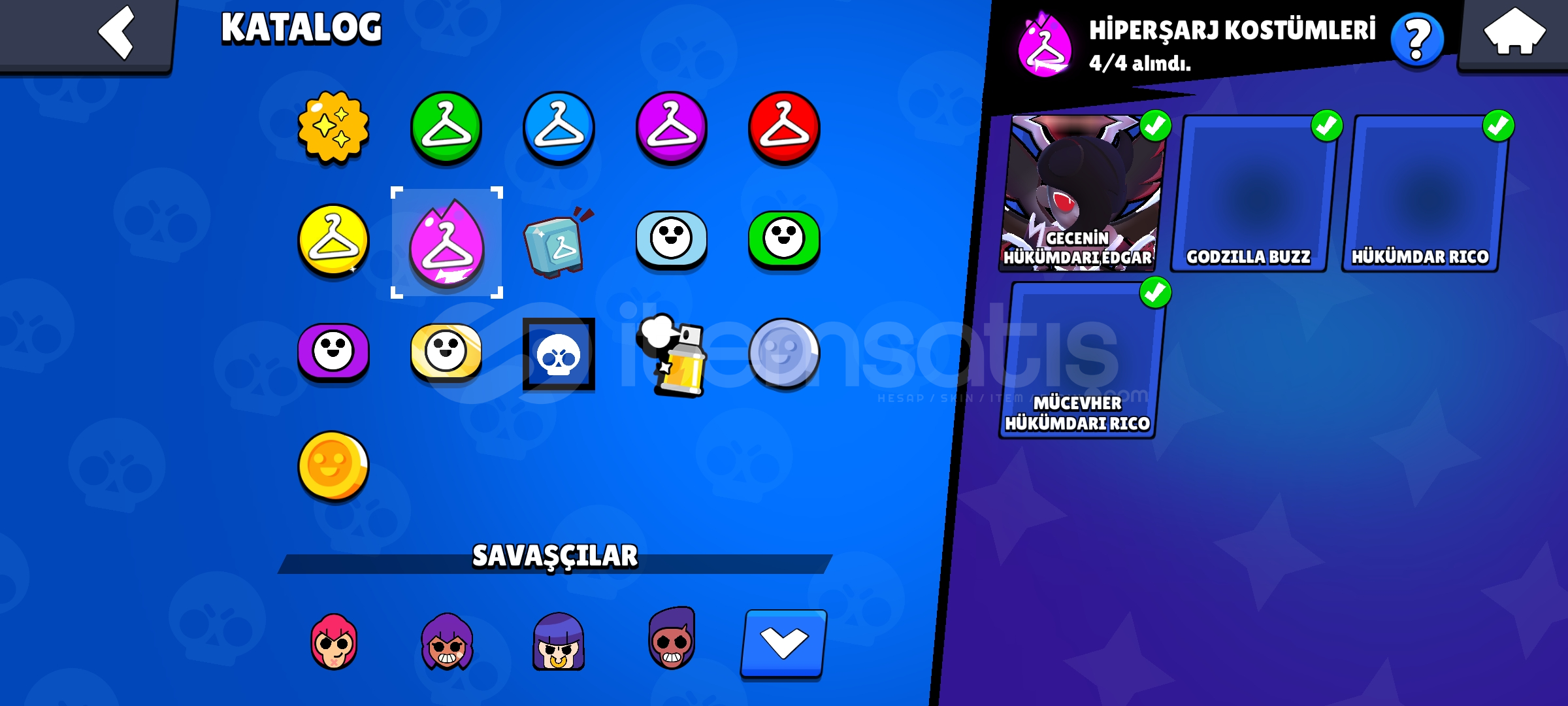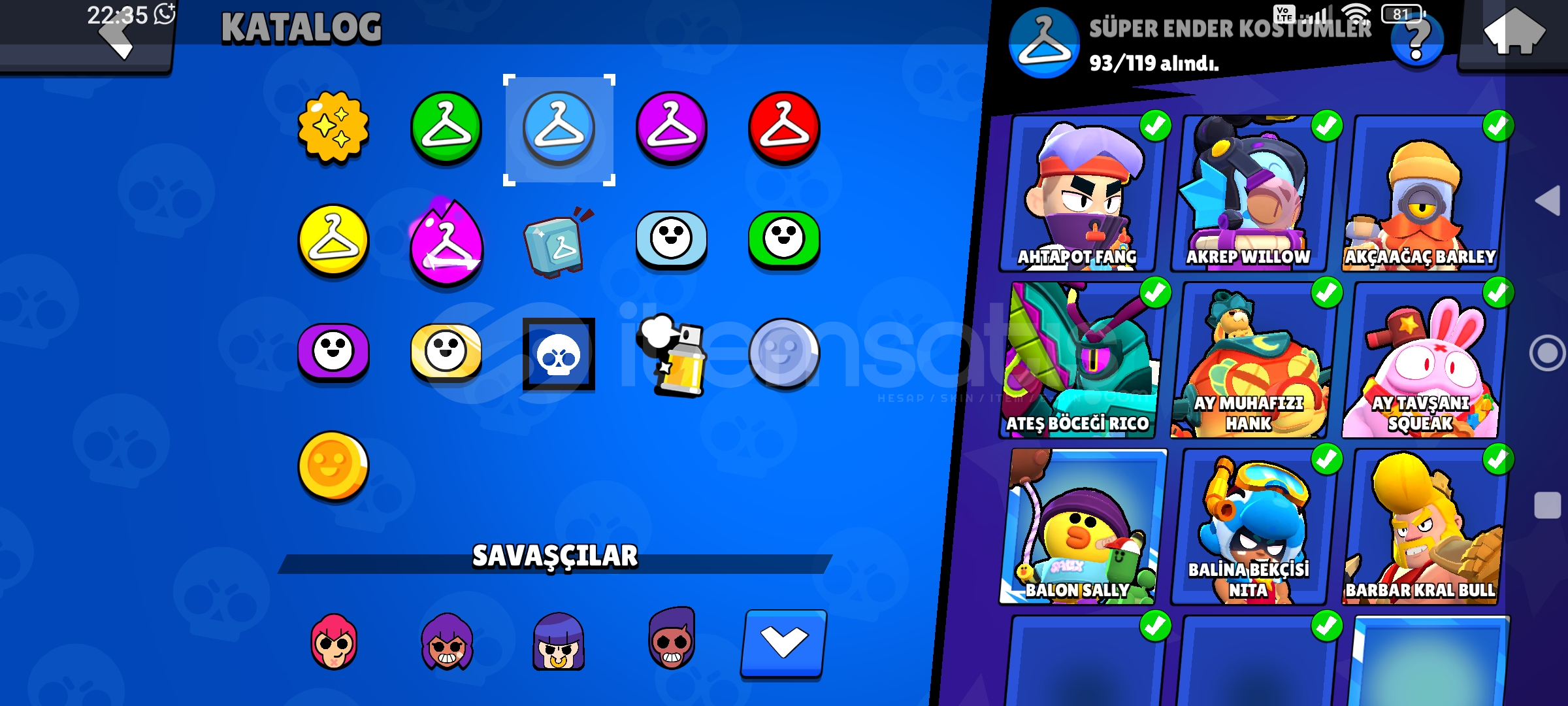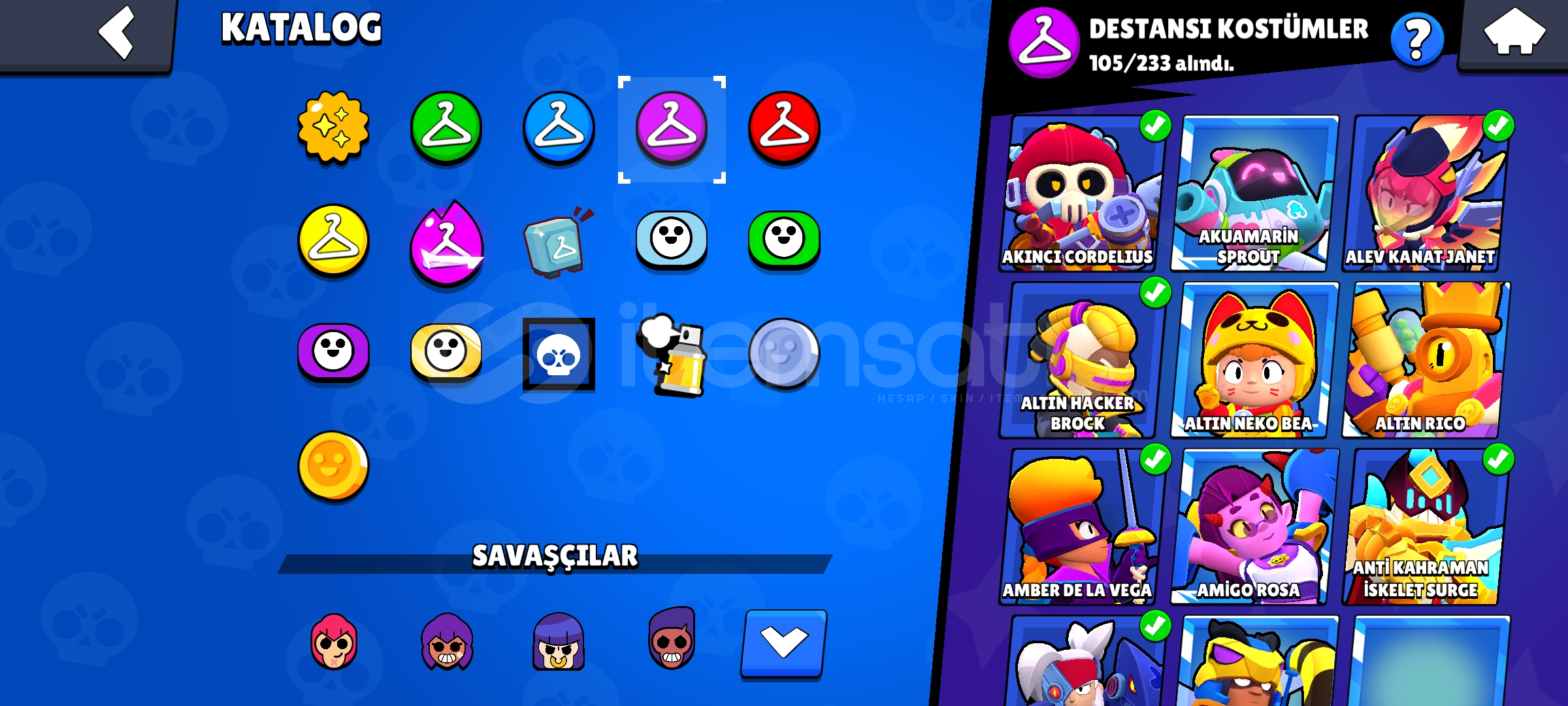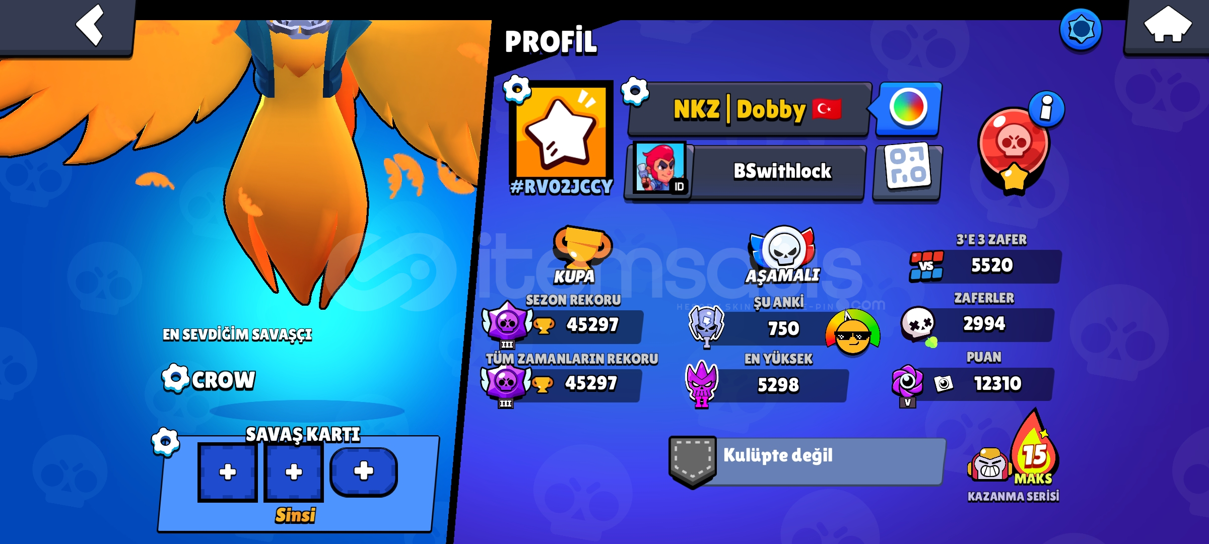 Almadan önce benle iletişime geçinisteyenlere detaylı bilgi verilebilir. 45K kupa93 karakter15 tane karakterin hipersarjı var[Video da gösterilecek!]80 ender kostüm160 tane sticker4 tane hipersarj kostüm93 süper ender kostüm105 destansı kostüm5 destansı kostüm5 efsanevi kostüm (Anka crow, meka leon gibi)3 tane karakter ünvanı9 tane braw pass ünvanıMars, Ay, Dünya flama