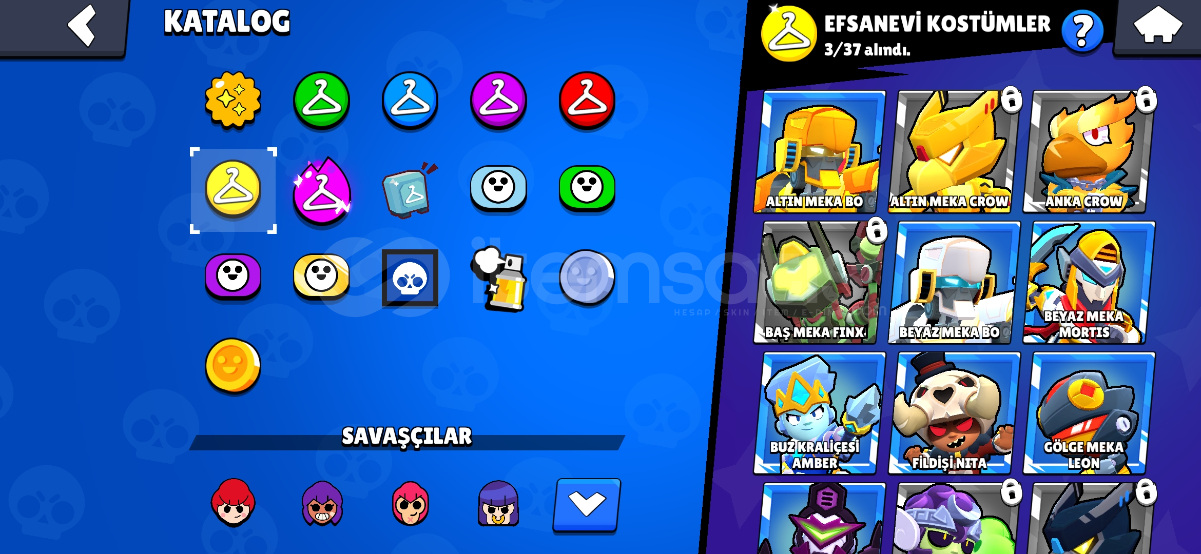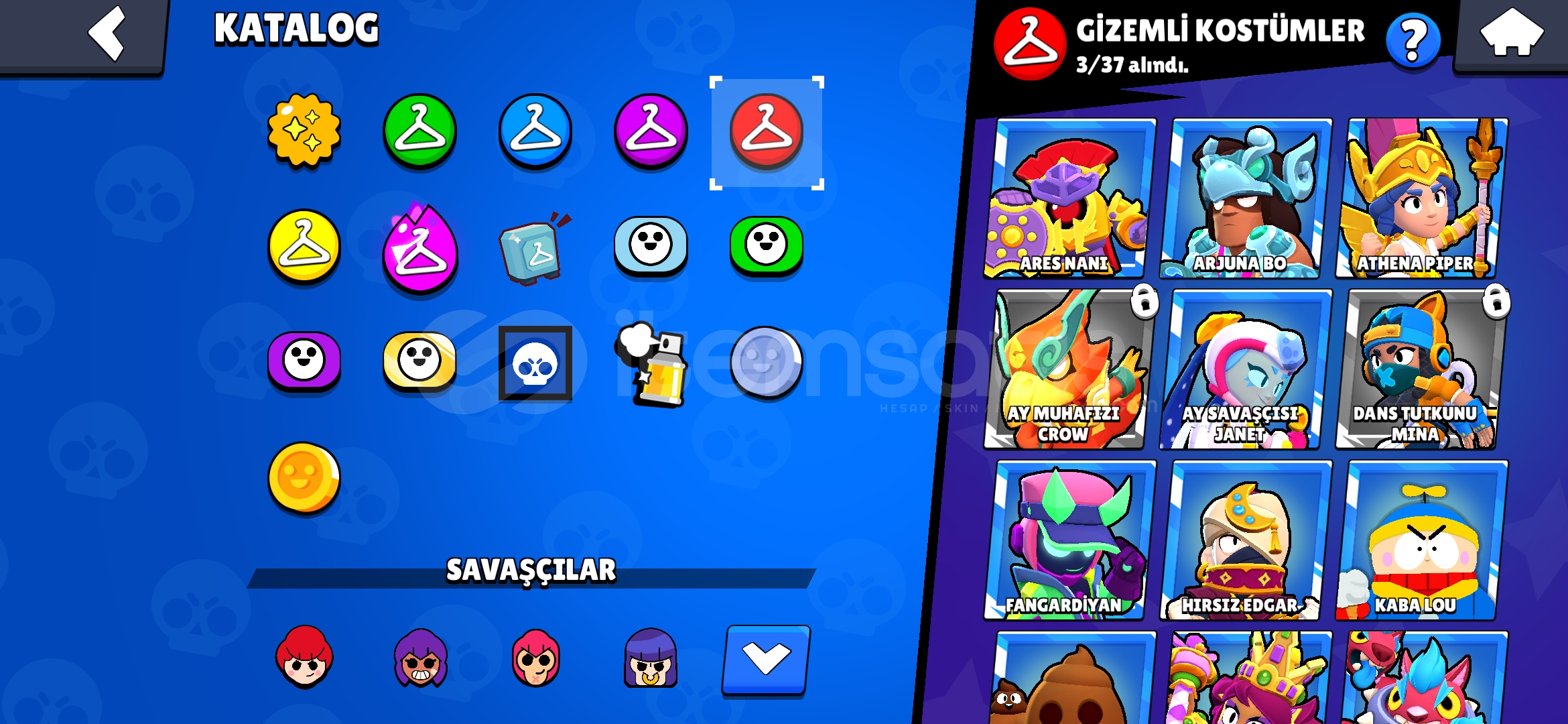 22K KUPA76 KARAKTER (10 U HİPERŞARJLI)58 ENDER KOSTÜM51 SÜPER ENDER KOSTÜM27 DESTANSI KOSTÜM3 GiZEMLİ KOSTÜM3 EFSANEVİ KOSTÜM3 HiPERŞARJ KOSTÜM5 GÖRSEL ÜRÜN KOSTÜMÜTOPLAMDA 150 KOSTÜM ÇiZiCi POCODA VARHESAPTAMAİLDE (CLASH ROYALE/SQUADBUSTER/HAYDAY/BRAWL STARS VARDIR)