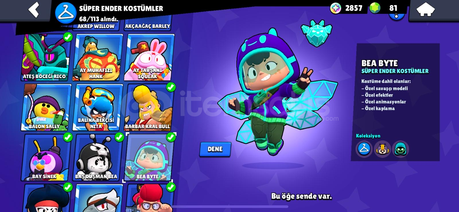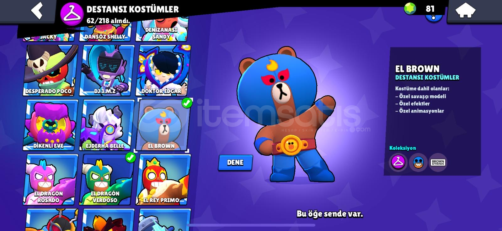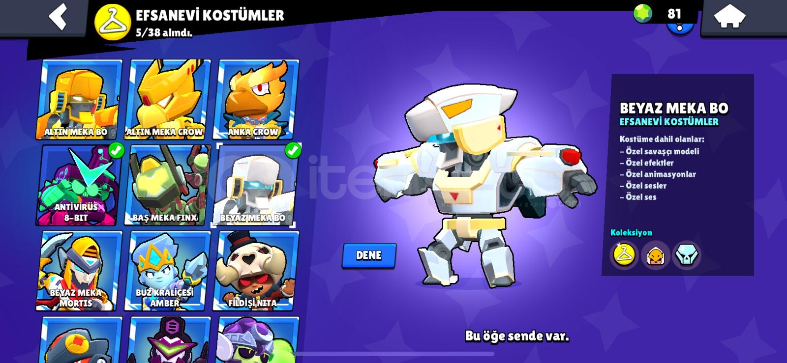 Hesap ilanımıza hoş geldiniz.Hesap Mail Devir ile teslim edilecektirHesapta 21 Adet 1000 kupa bulunmaktadır.Tüm karakterler açık olup, Mars 2 şöhretindedir.Kostümler fotoğraflarda gösterilmektedirSormak istediğiniz, merak ettiklerinizi dm den yazabilirsiniz.Pazarlık payı vardır.Alıcıya Hayırlı Olsun.