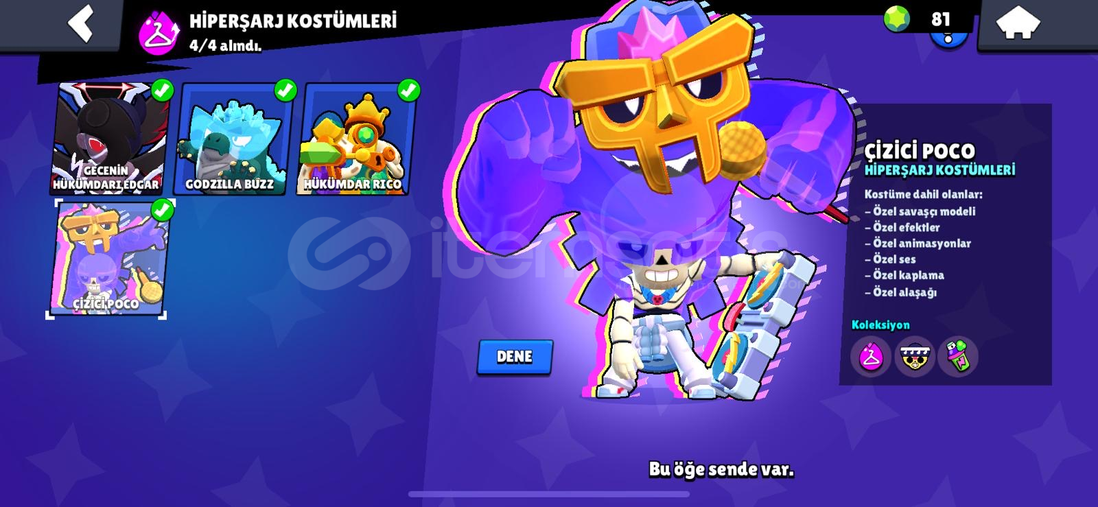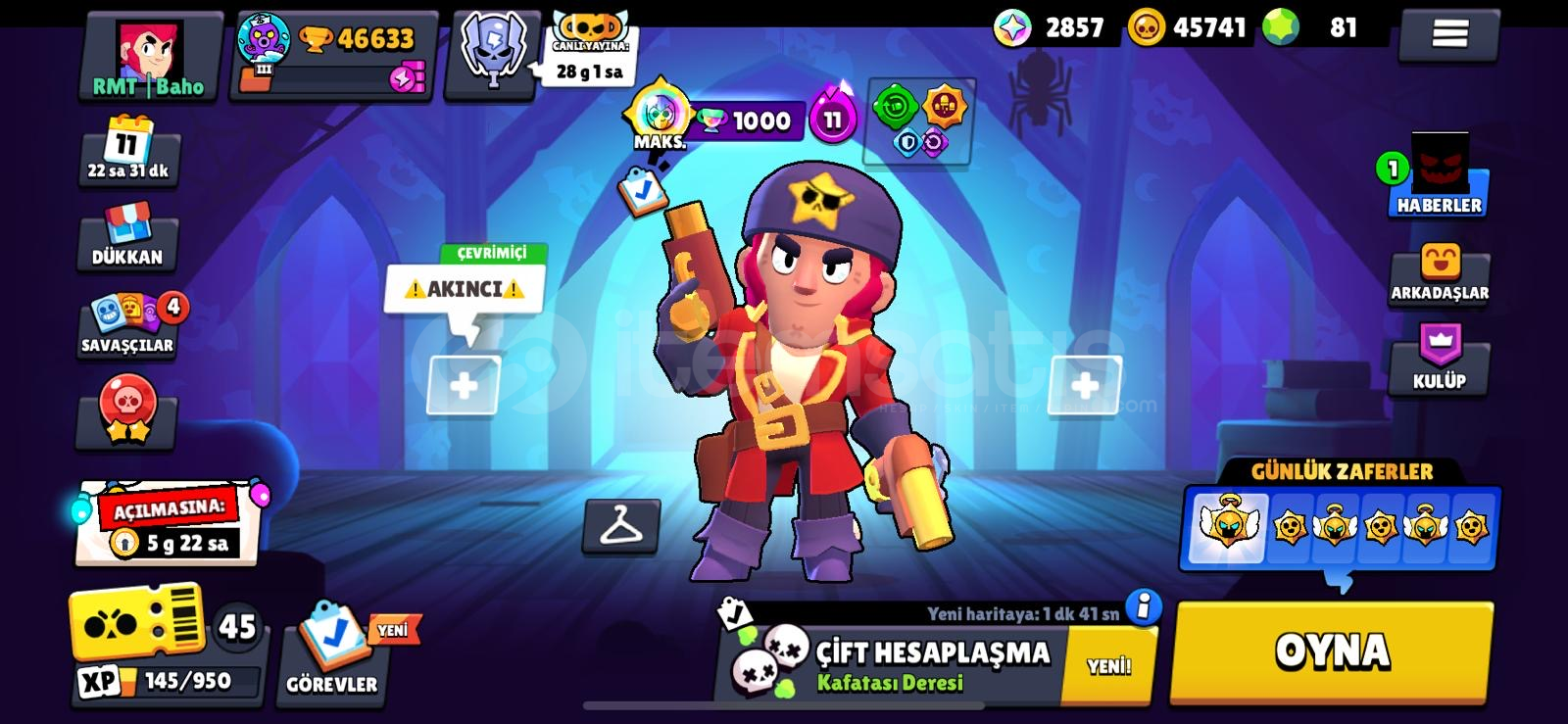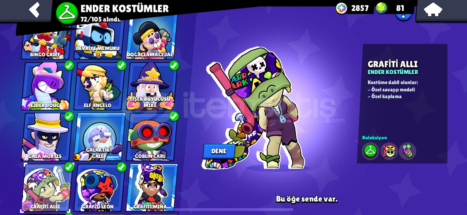 Hesap ilanımıza hoş geldiniz.Hesap Mail Devir ile teslim edilecektirHesapta 21 Adet 1000 kupa bulunmaktadır.Tüm karakterler açık olup, Mars 2 şöhretindedir.Kostümler fotoğraflarda gösterilmektedirSormak istediğiniz, merak ettiklerinizi dm den yazabilirsiniz.Pazarlık payı vardır.Alıcıya Hayırlı Olsun.