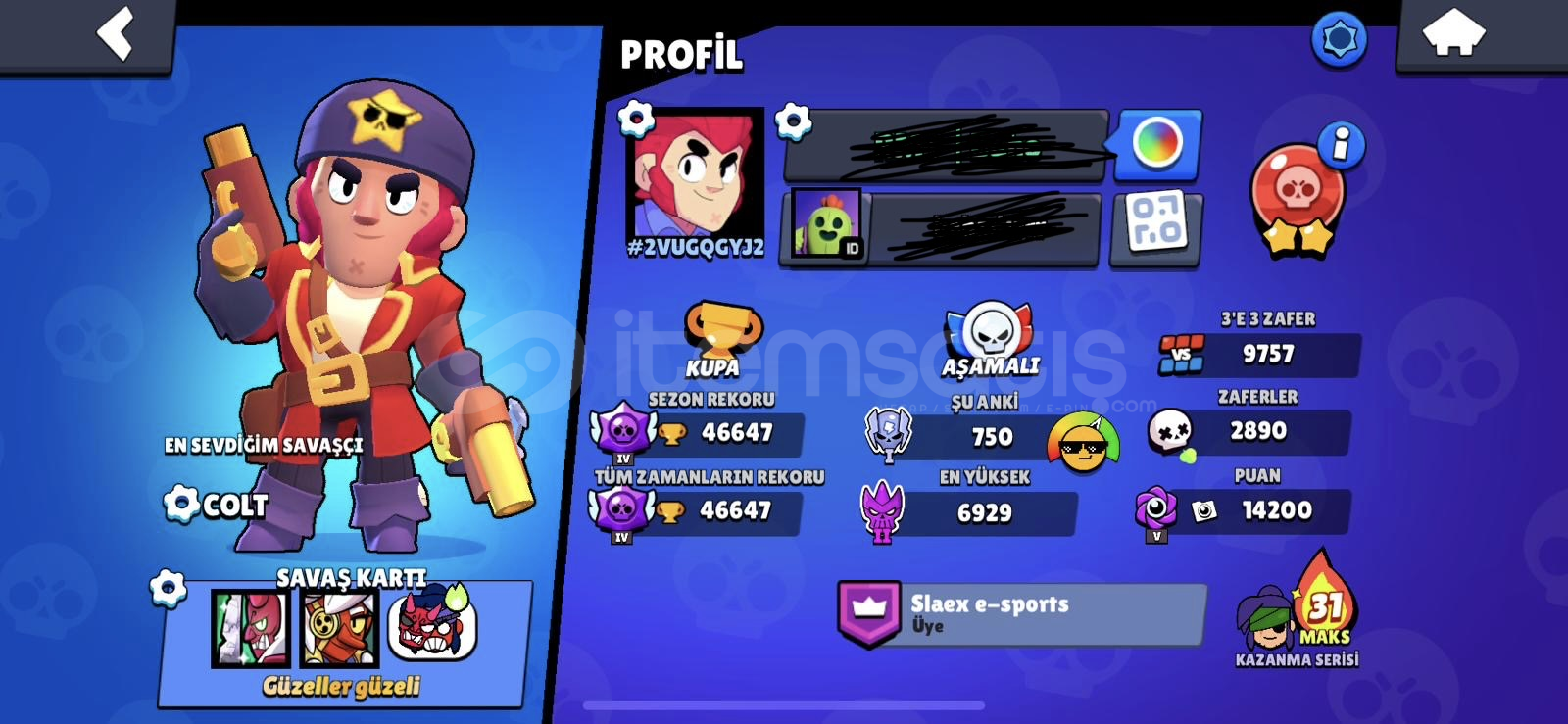 MAİNLİK 46.500 KUPA BRAWL STARS HESABI