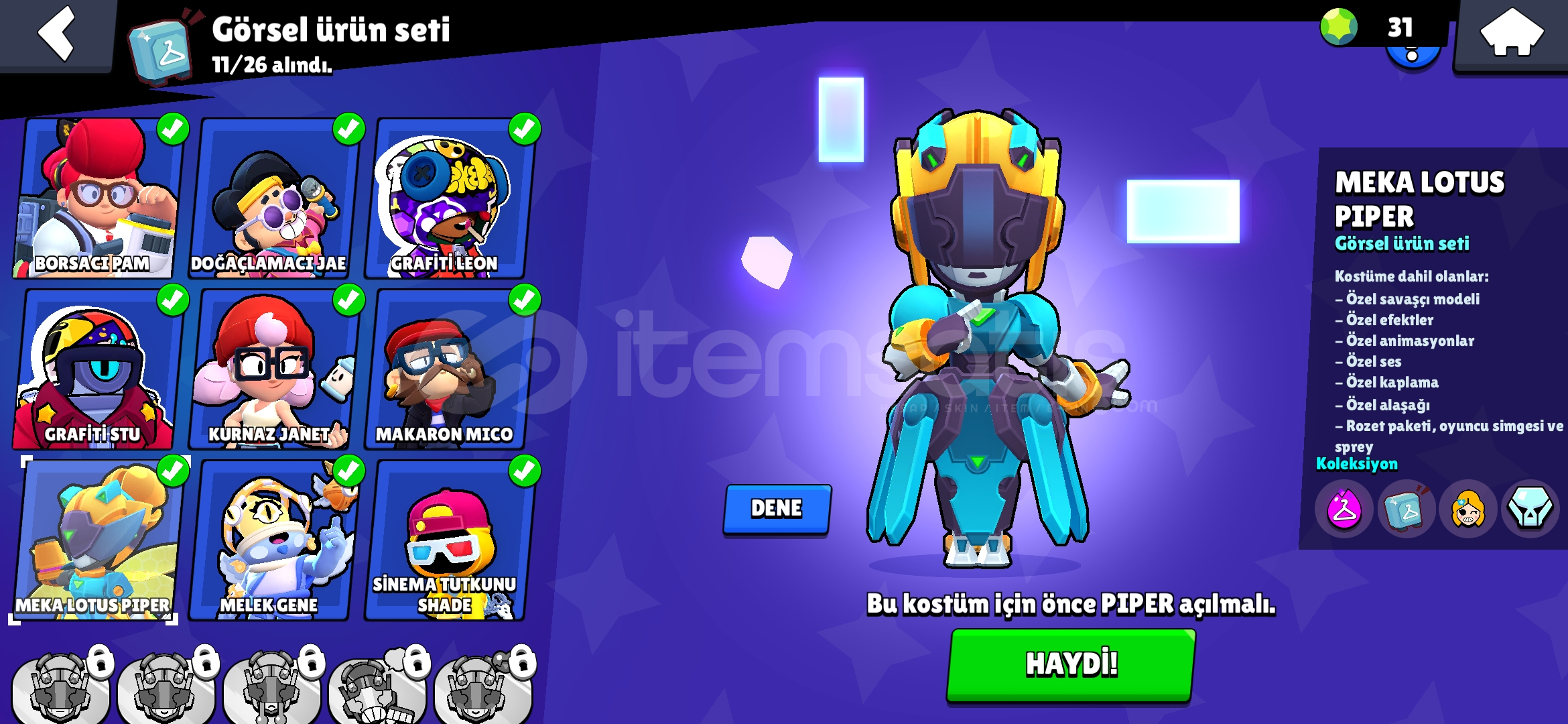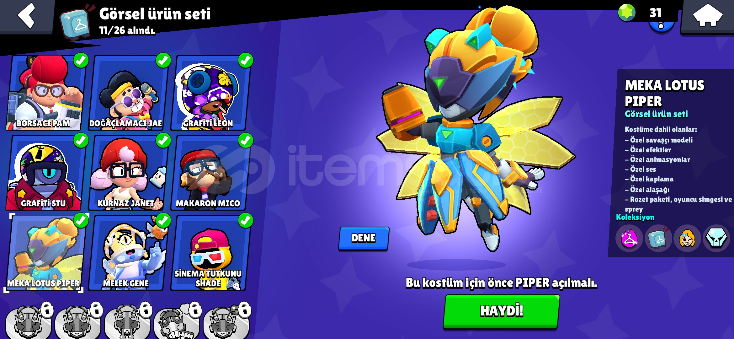 Özel Kostümler:Şeytan Mortis, Hopper Bull, MEKA LOTUS PİPERKarakter Sayısı: 25Altın: 8120Güç Puanı...