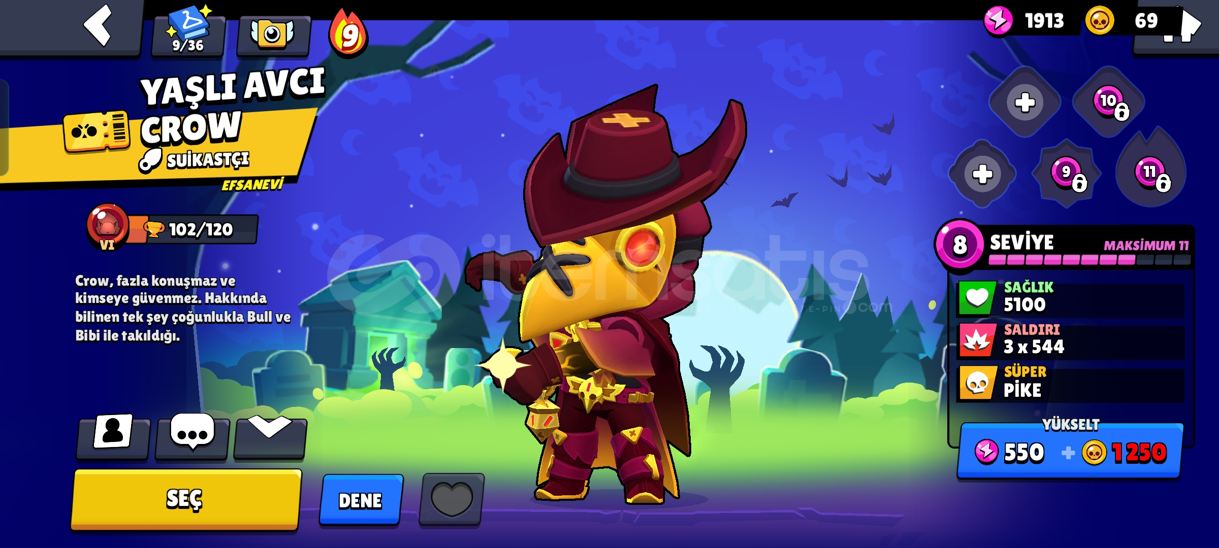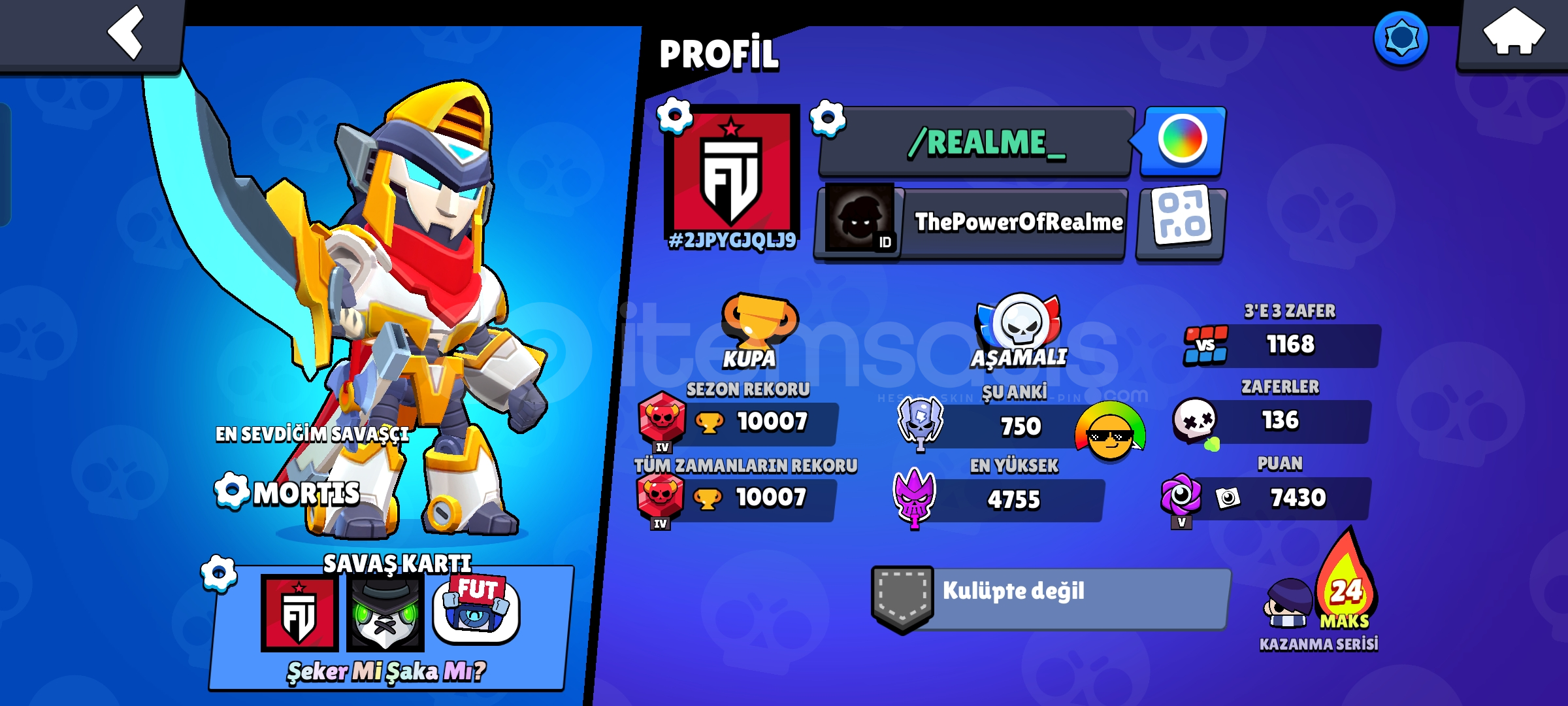 Meka Mortisli efsane hesap.Brawl pass açılmıştır.105 kostüm var.Hesapta güzel kostümler var.Kacırmay...