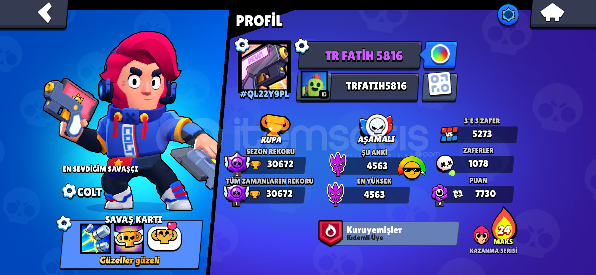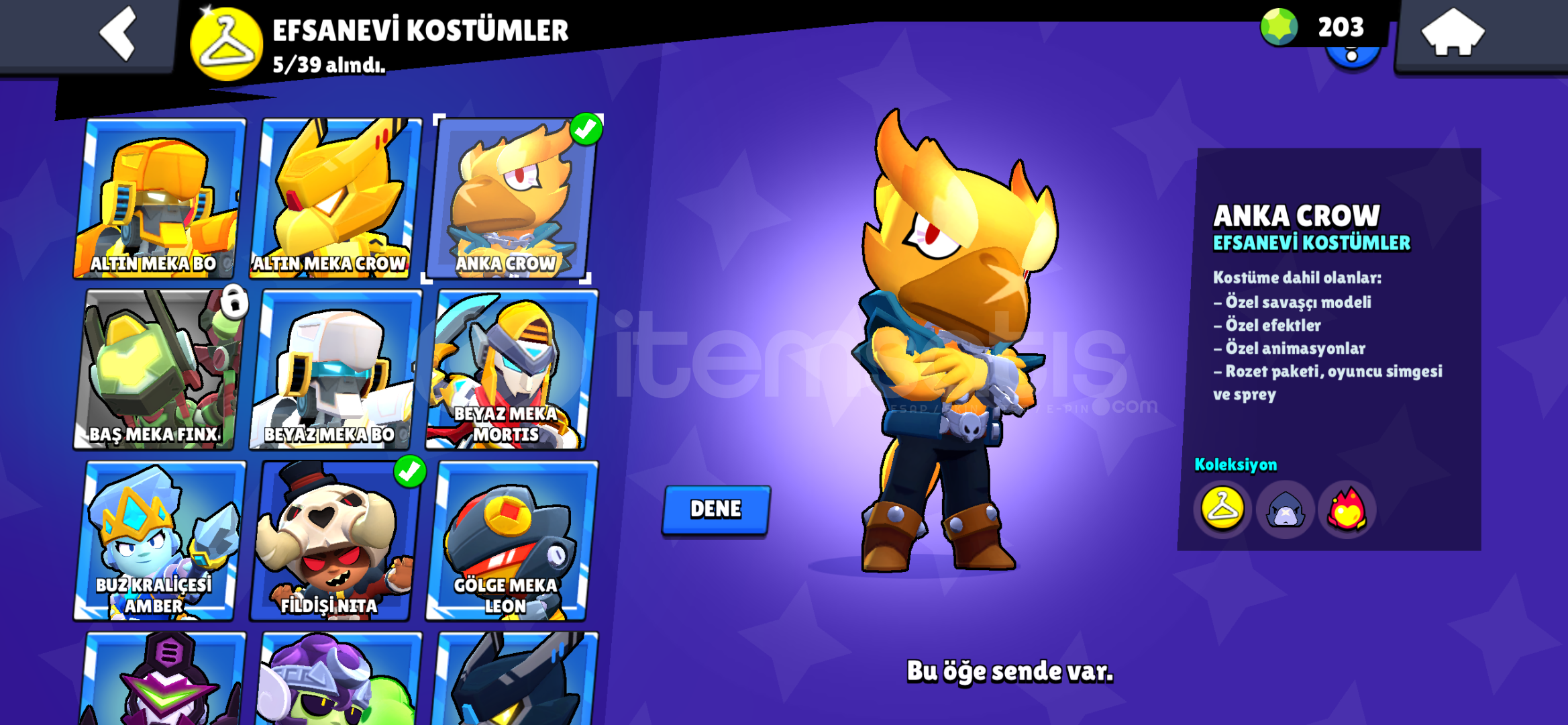 Artık oyunu oynamadığım için satılıktır ve nadir olan kostüm mücadeleci çoktur vardır ve brawl passde açmış olduğum 3 tane kostüm vardır oyuna minimum toplamda 700 TL yatırılmıştır hesapta 100 taş vardır