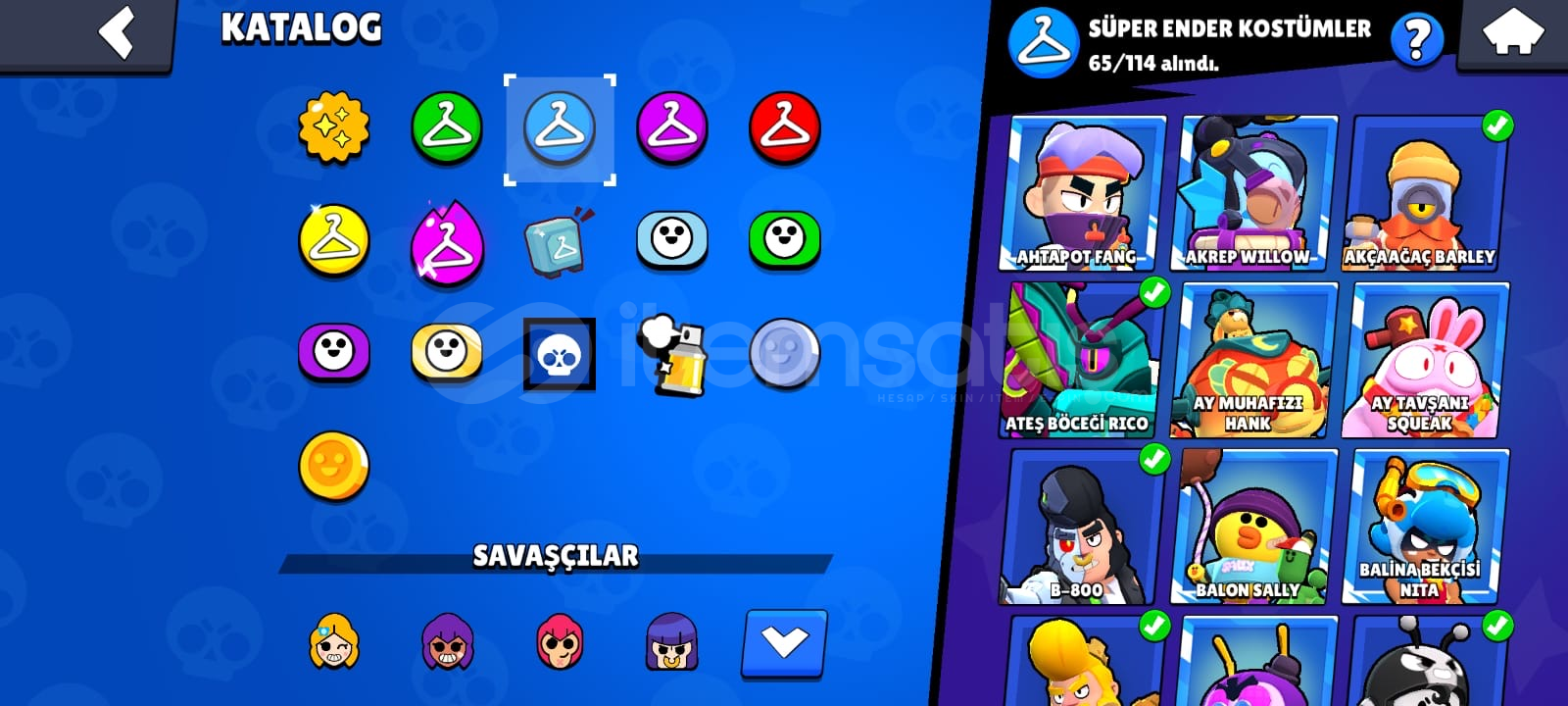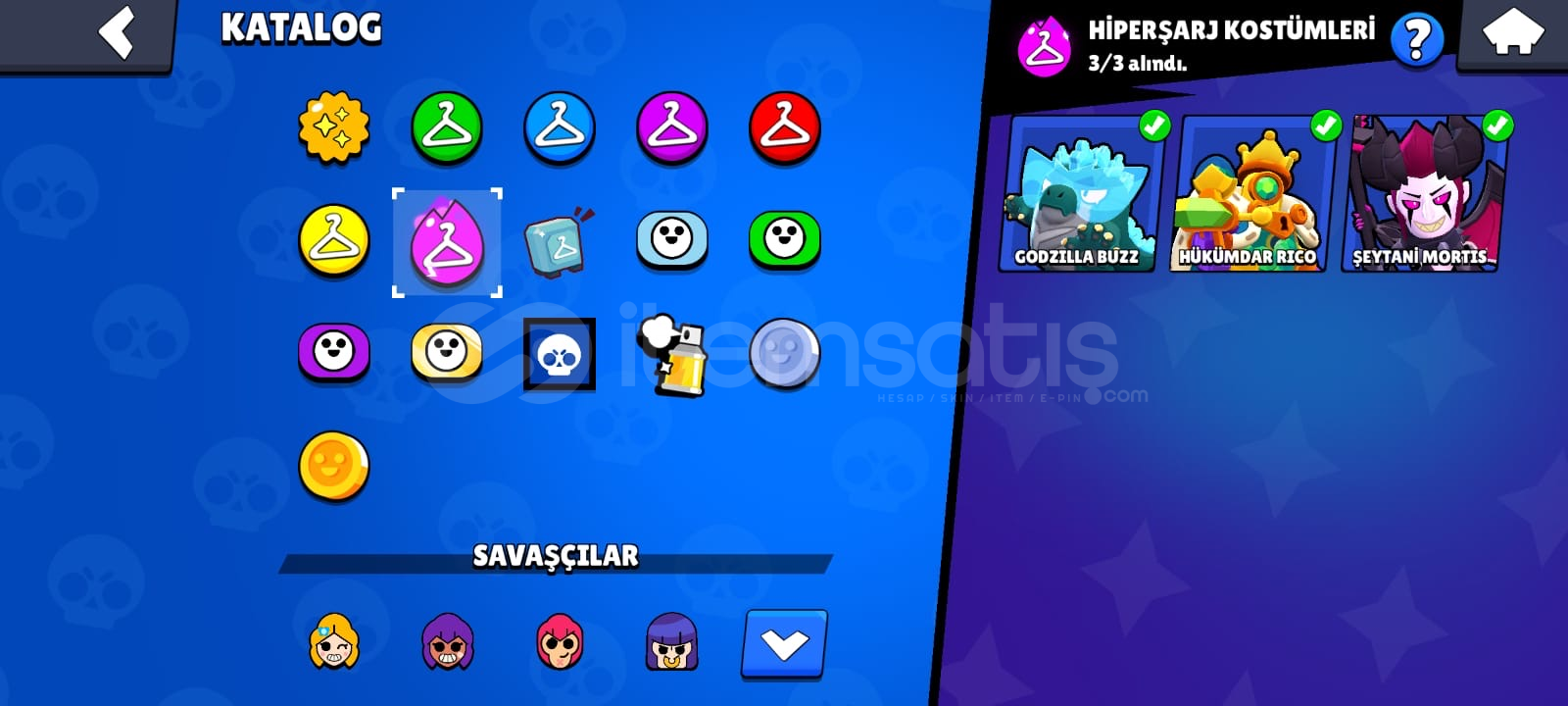 Bazı Nadir ve Değerli Kostümler:Altın El Belleİskeletor PiperDoğuştan Kötü BuzzSilahşor ColtFanatik FangEfsanevi Kostümler: Meka Leon (Gölgeside Mevcuttur)Meka Mortis (Beyaz Ve Siyahıda Mevcuttur)Sporcu StuMeka Colt ( Hain’ide Mevcuttur)Surge Işıkyılı 10 ve üstü ünvan3 e yaklaşık şöhret