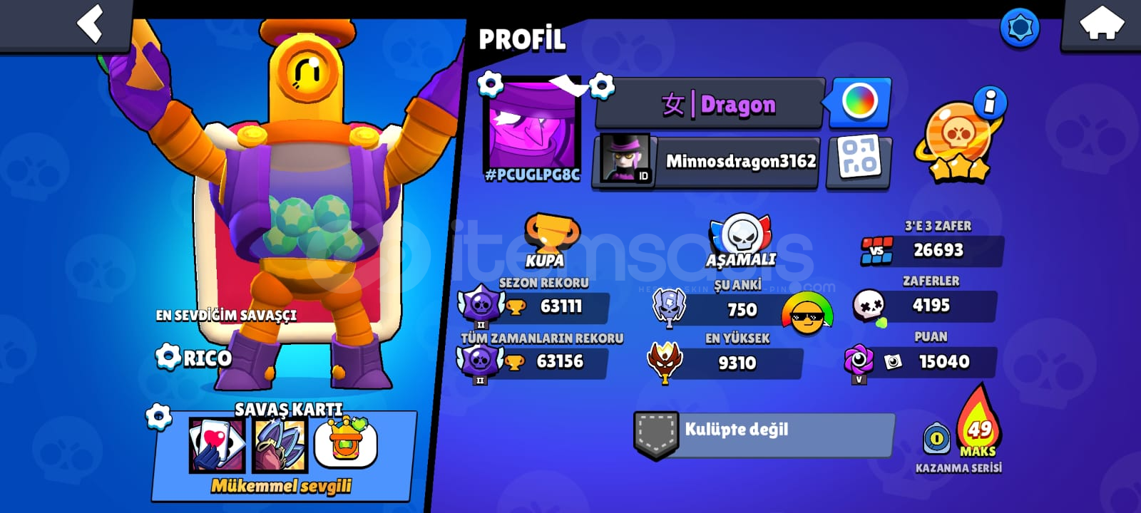 Selamlar! İlanımdaki hesap, yılların emeği ve devasa bir koleksiyonu barındırıyor. en zorlu liglerinde mücadele edebileceğiniz, nadir ve özel kostümlere sahip dopdolu bir hesaptır.HESAP BİLGİLERİOyuncu ID: #PCUGLPGBCİsim: ♀ | Dragon (Minosdragon3162)Toplam Kupa Rekoru: 🏆 63.156Güncel Sezon Rekoru: 🏅 63.1113’e 3 Zafer Sayısı: ⚔️ 26.693Toplam Zafer: 🥇...