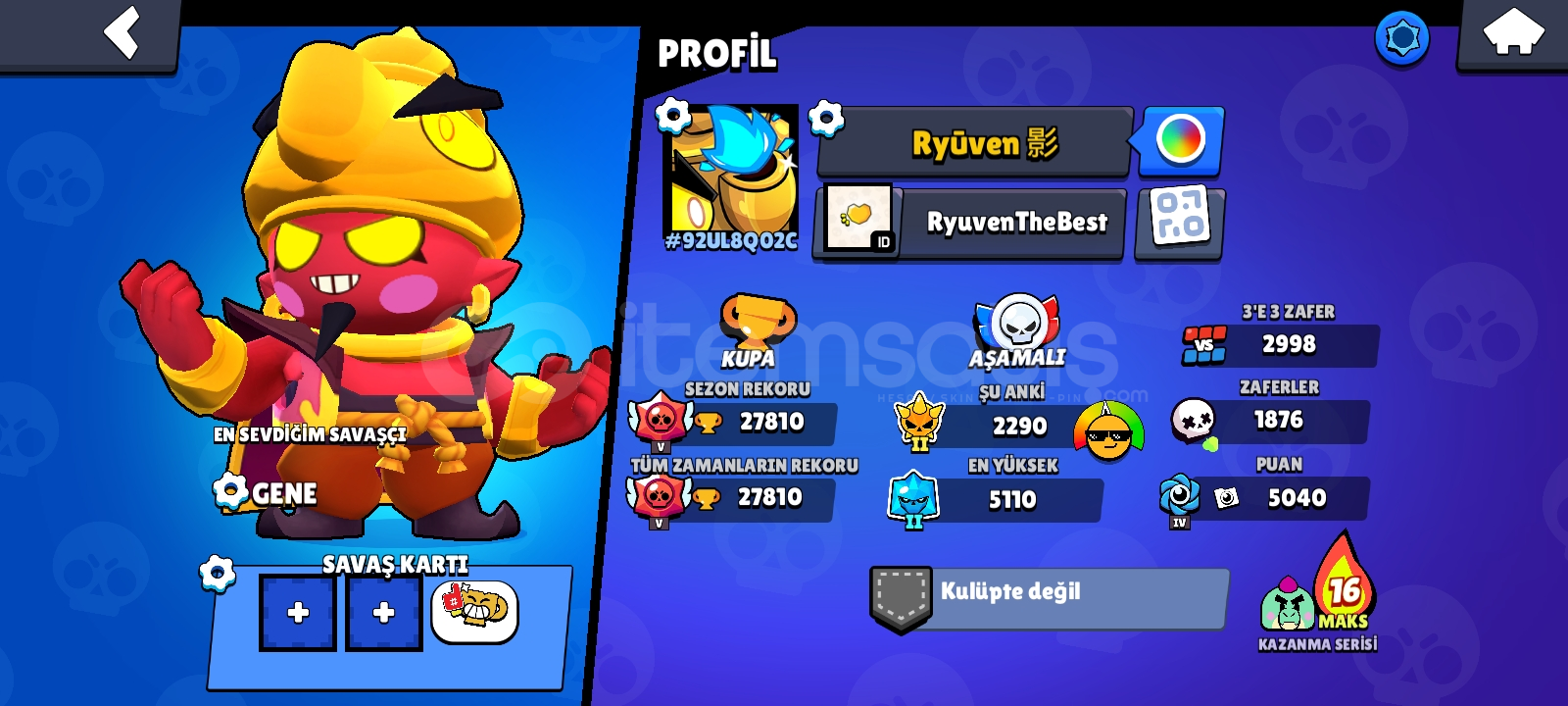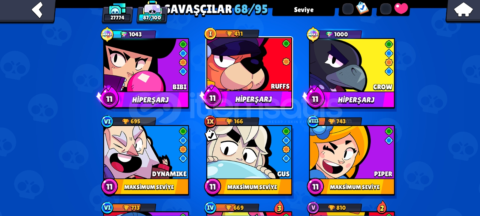 Hesap tamamen temizdir. Oyun kurallarına uygundur, ban riski yoktur. Hesap devri sırasında ve sonrasında her türlü sorunuzda destek verilir. Güvenli alışveriş için tüm süreci sizinle şeffaf şekilde yürütüyorum. Memnuniyetiniz önceliğimizdir.Kupa Sayısı: 27774Kostüm Sayısı: 50 Ender 32 Süper Ender 27 Destansı 3 Gizemli 1 Efsanevi 1 Hiperşarj...