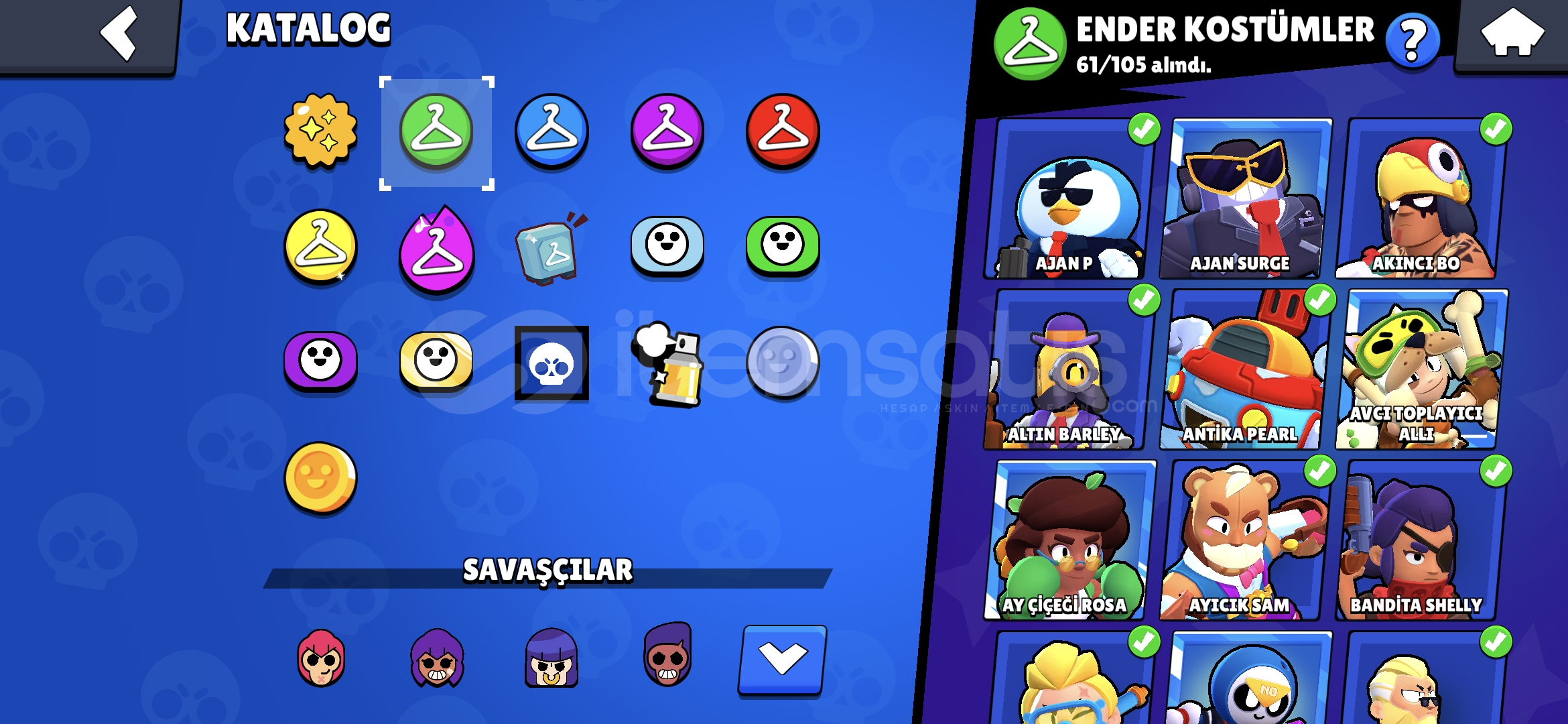 Daha fazla detaylı bilgi için dm geri kalanı görsellerde vardır ek olarak baya pass açılmış nadir emoteler vardır 1 altın 1 gümüş kostüm vardır ve neredeyse her karakterde güzek skin vardır