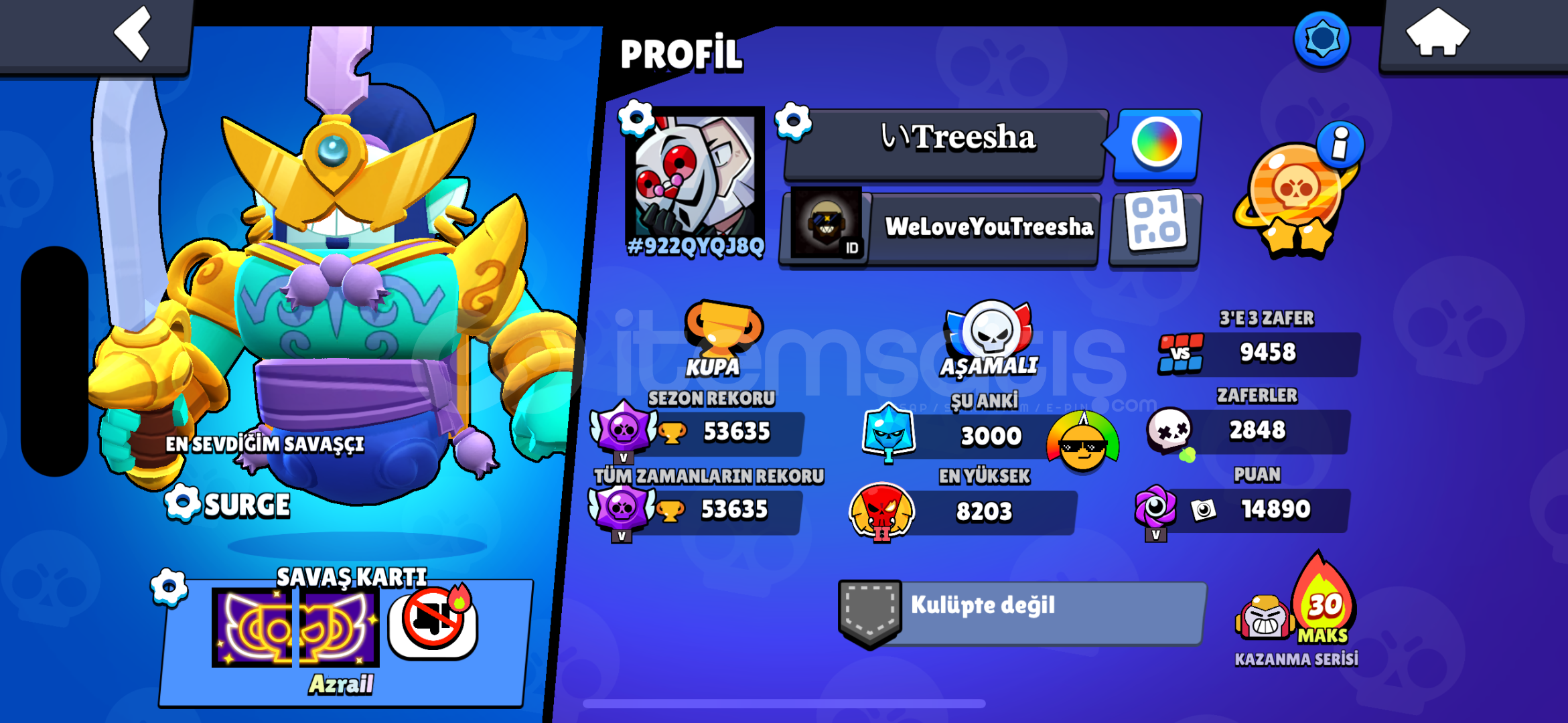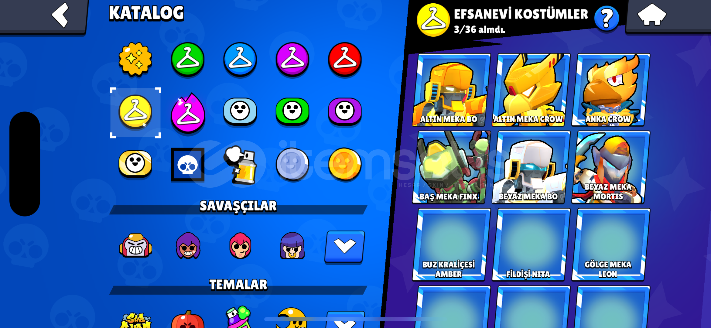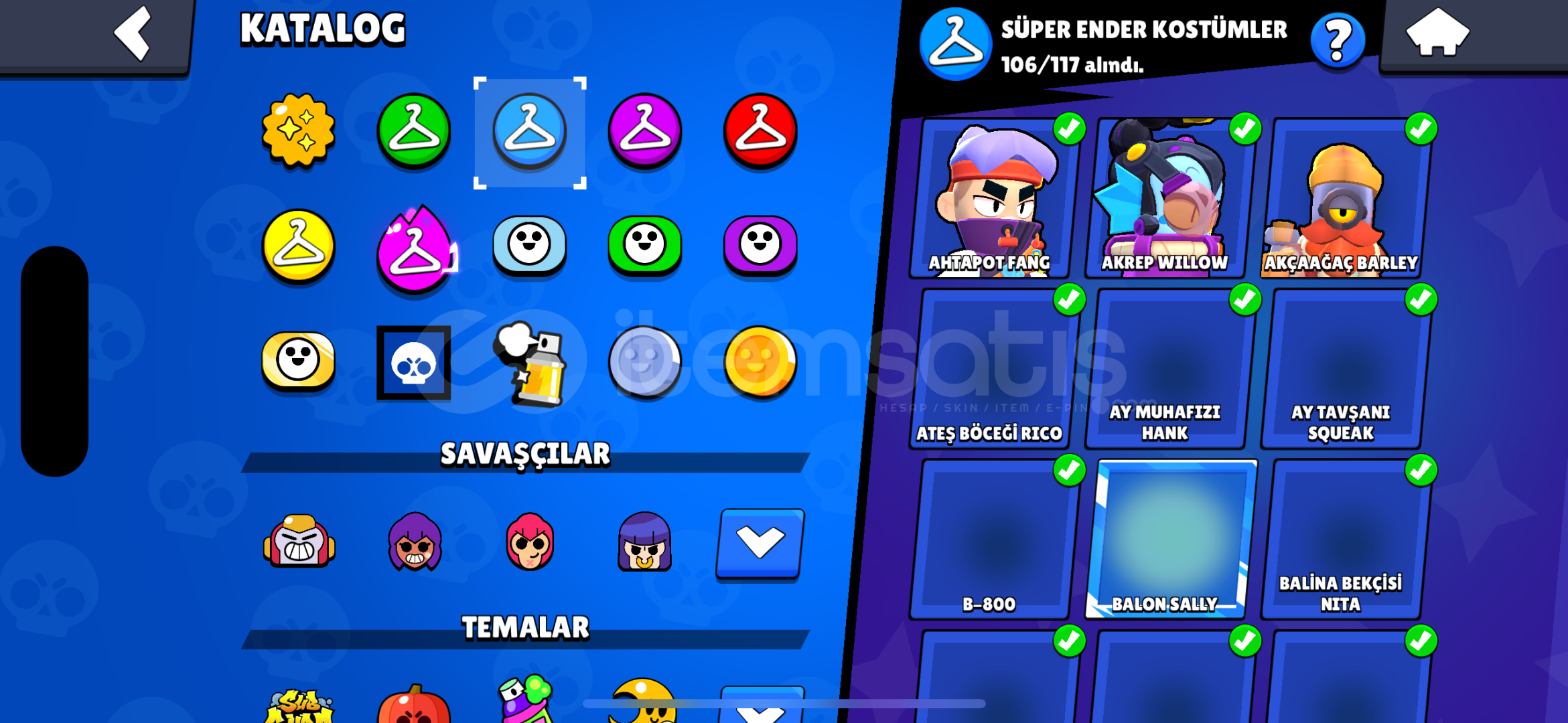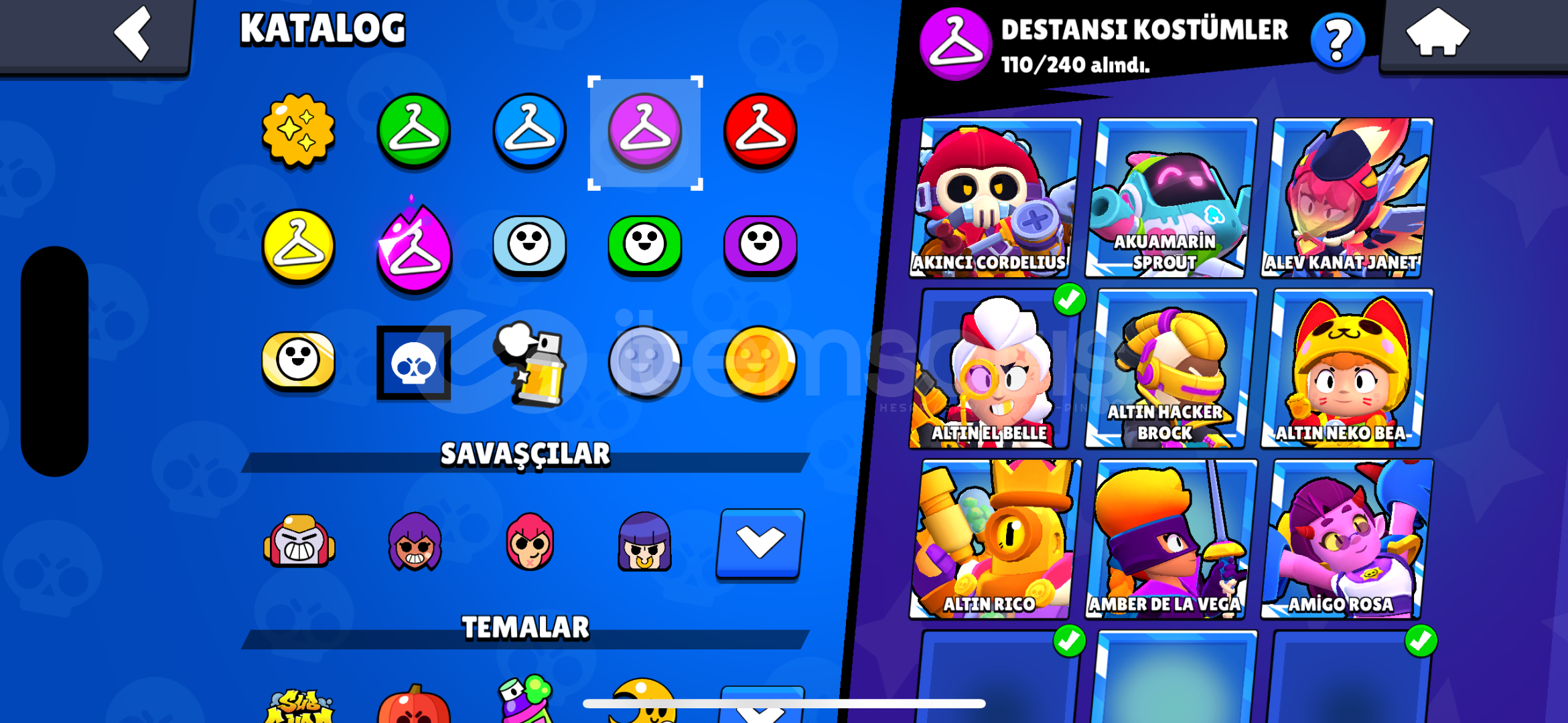 306 Kostüm vardır efsane hesapTelefon bağlı değil gmail değiştirilecek59 tane 11. Seviye, 60 hiperşarj20k Altın 200 Elmas 30K Mor Puan vardırİlk gelen alır.Aktif olarak bpp vardır.