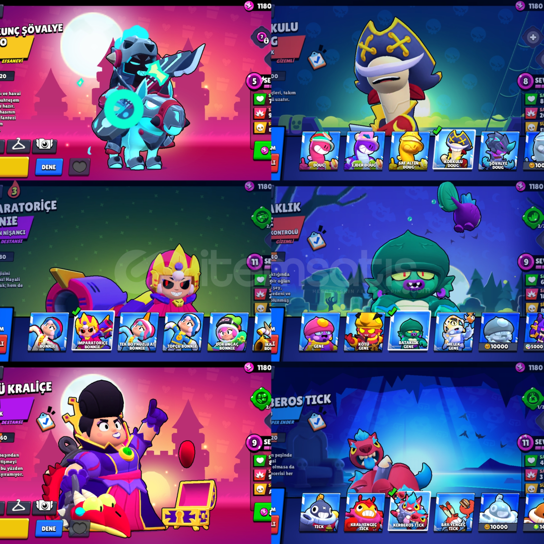 54 ender48 süper ender67 destansı11 gizemli7 efsanevi1 hşarjtoplam 188 kostümlüdynamike pro pass 4 brawl pass + kupası düşük çok kasılmadı böyle olması daha iyi alıp hesabı istediğiniz gibi kasıp main hesap yapabilirsiniz. içinde 137 elmas var. istediğiniz cadılar bayramı kostümlerini rahatça alabilirsiniz