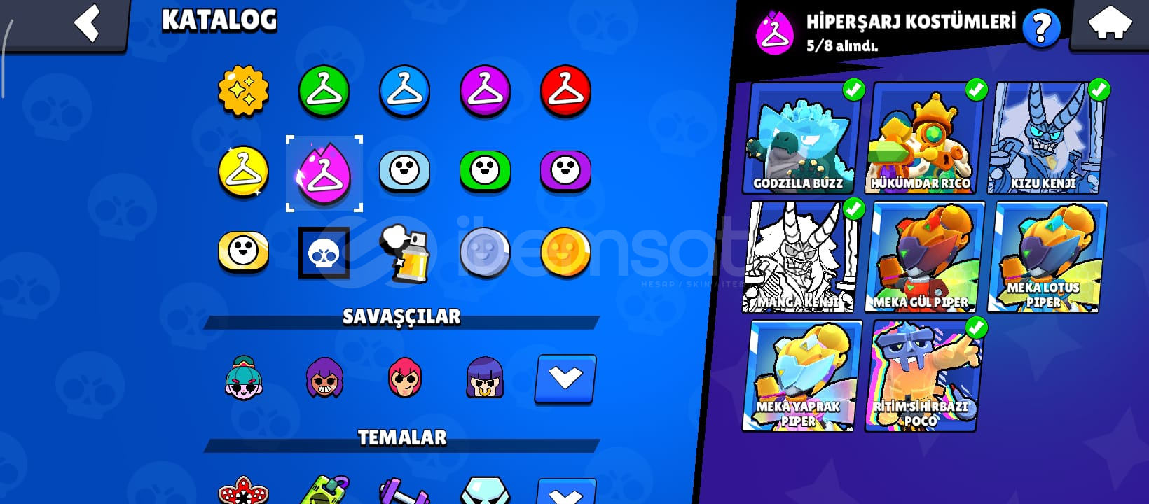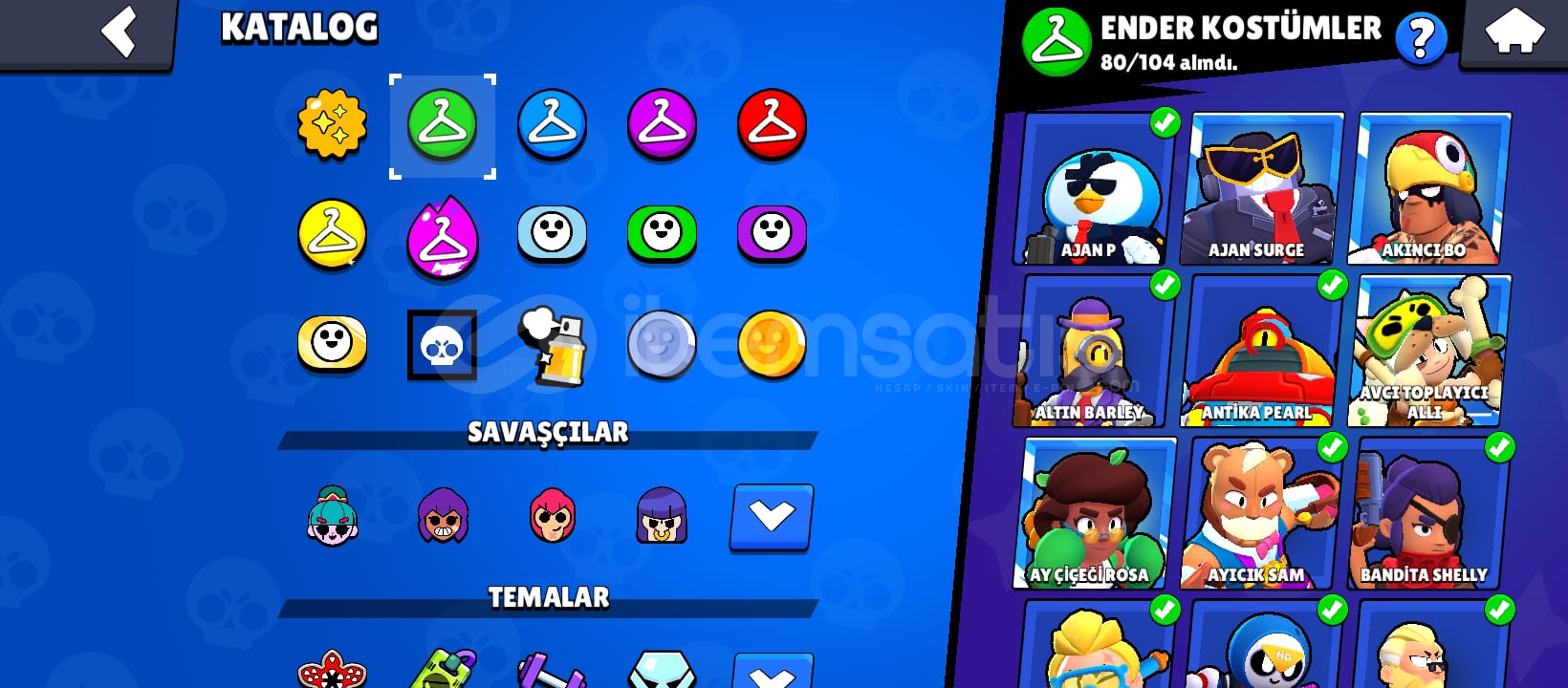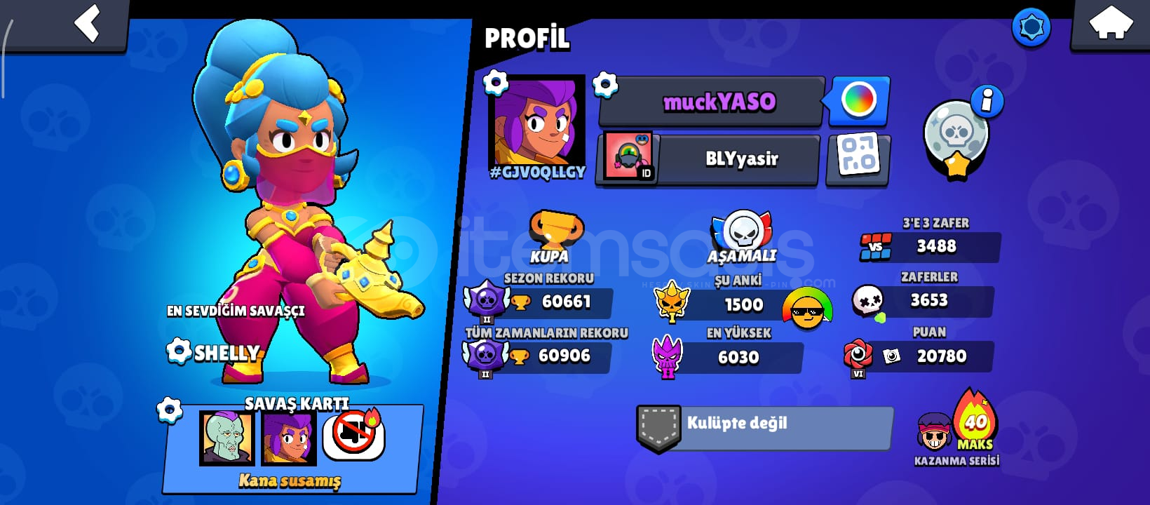 80 ender köstüm89 süper ender kostüm87 destansı kostüm7 gizemli kostüm7 efsanevi kostüm (4 tanesi Meka)5 hiperşarj kostüm97 karakter14 maks rankAy şöhreti 19 ünvan (4 adeti BPP)60000 kupa10k mücevher96 elmasPazarlık veya sorular için yazabilirsiniz
