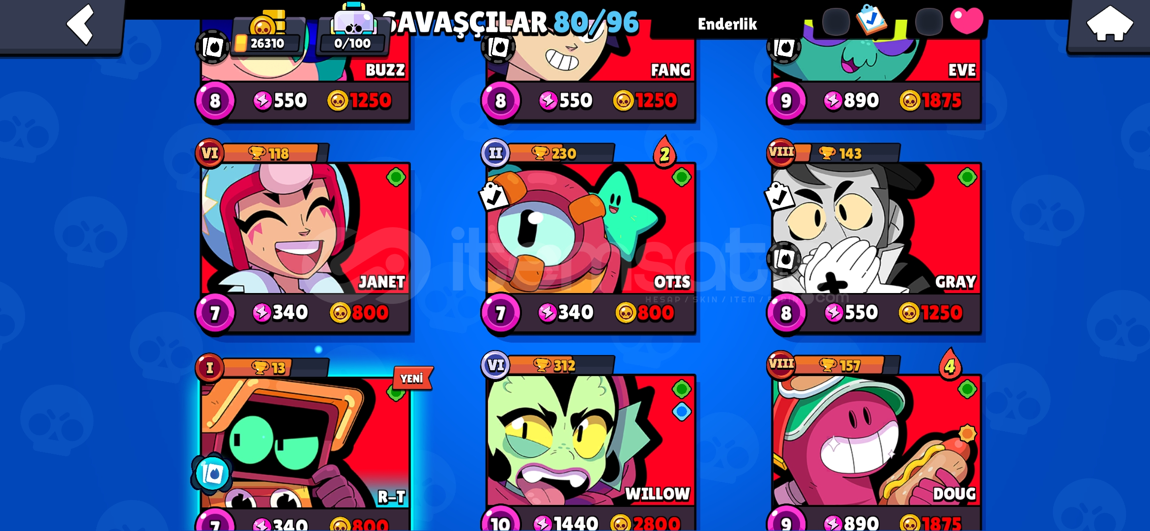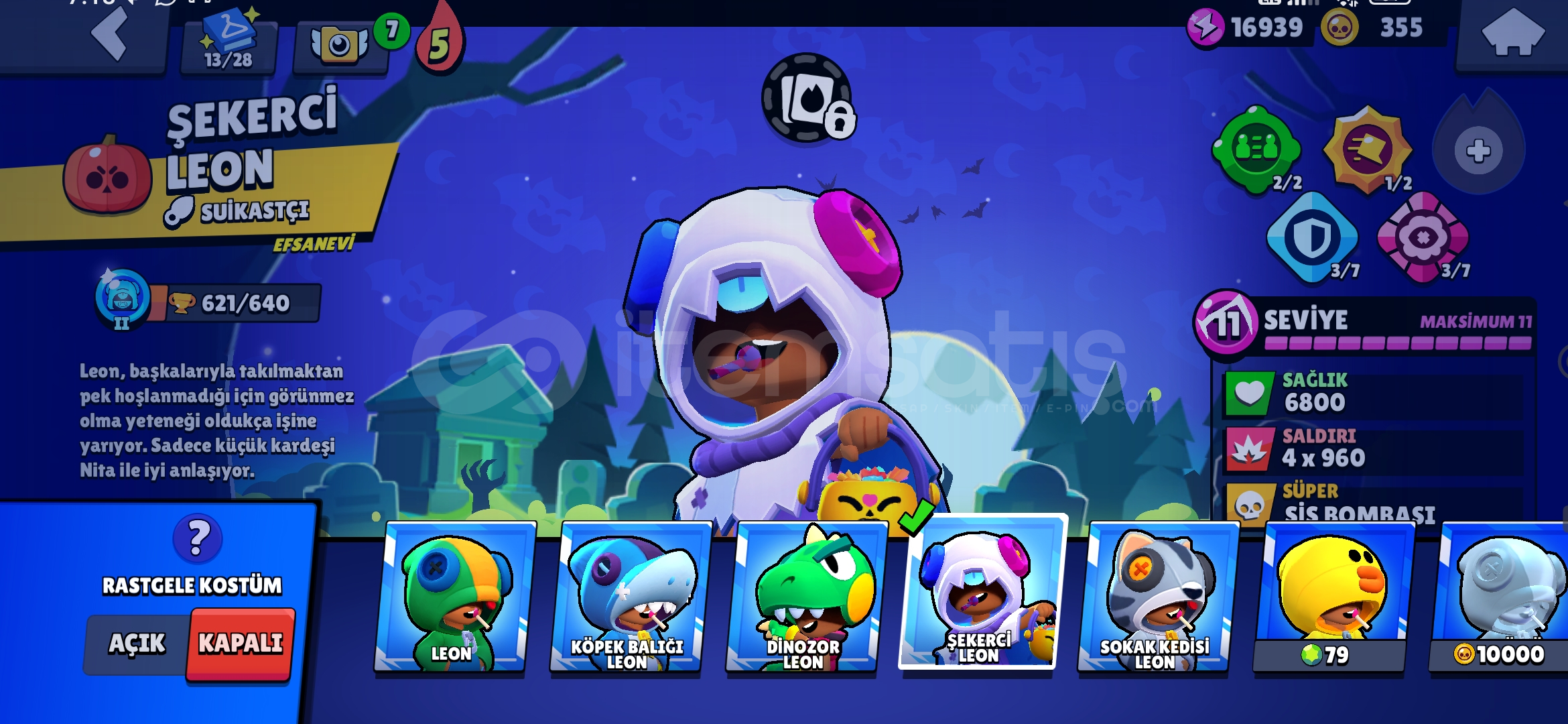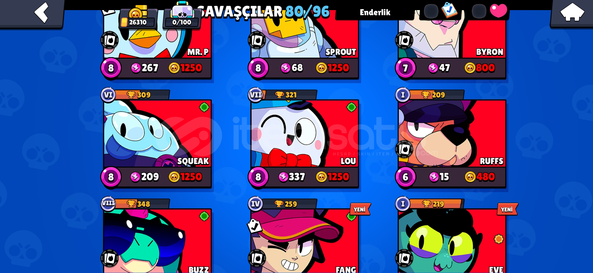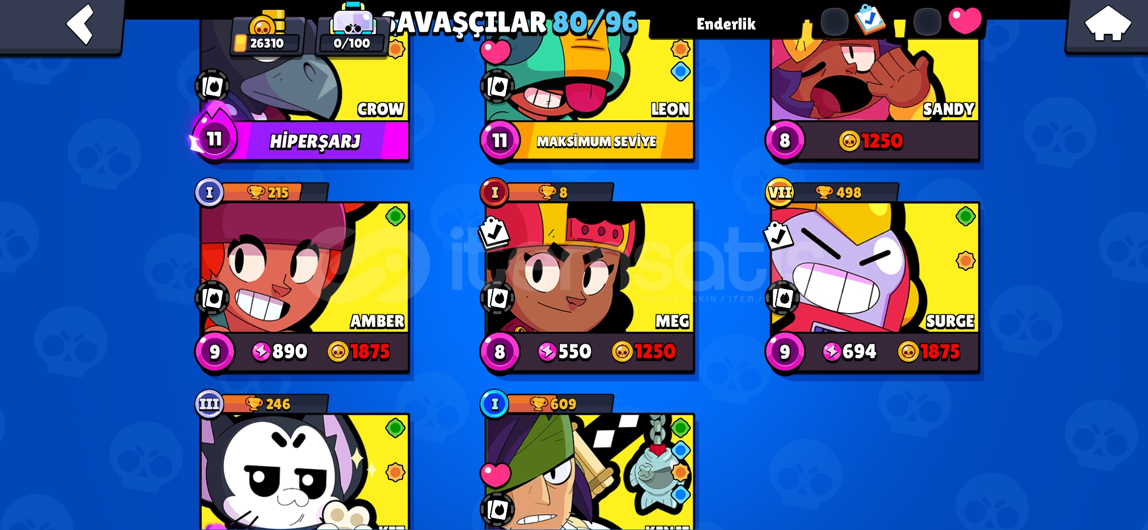 Lütfen resimlere dikkatlice bakınızMailini bana ulaşarak değiştirebilirsiniz hesabın tüm bilgilerini kendinize alabilirsiniz.Bu ilandaki hesap verilecektir.Hesapta 2 brawlpass açılmıştır.Hesapta efsanevi ve gizemli karakter çıkma olasılığı biraz yüksektir.Ne zaman aktif olursam o zaman vercem ama genellikle 16:00 ve 22:00 arası aktif oluyorum.26k kupadır.