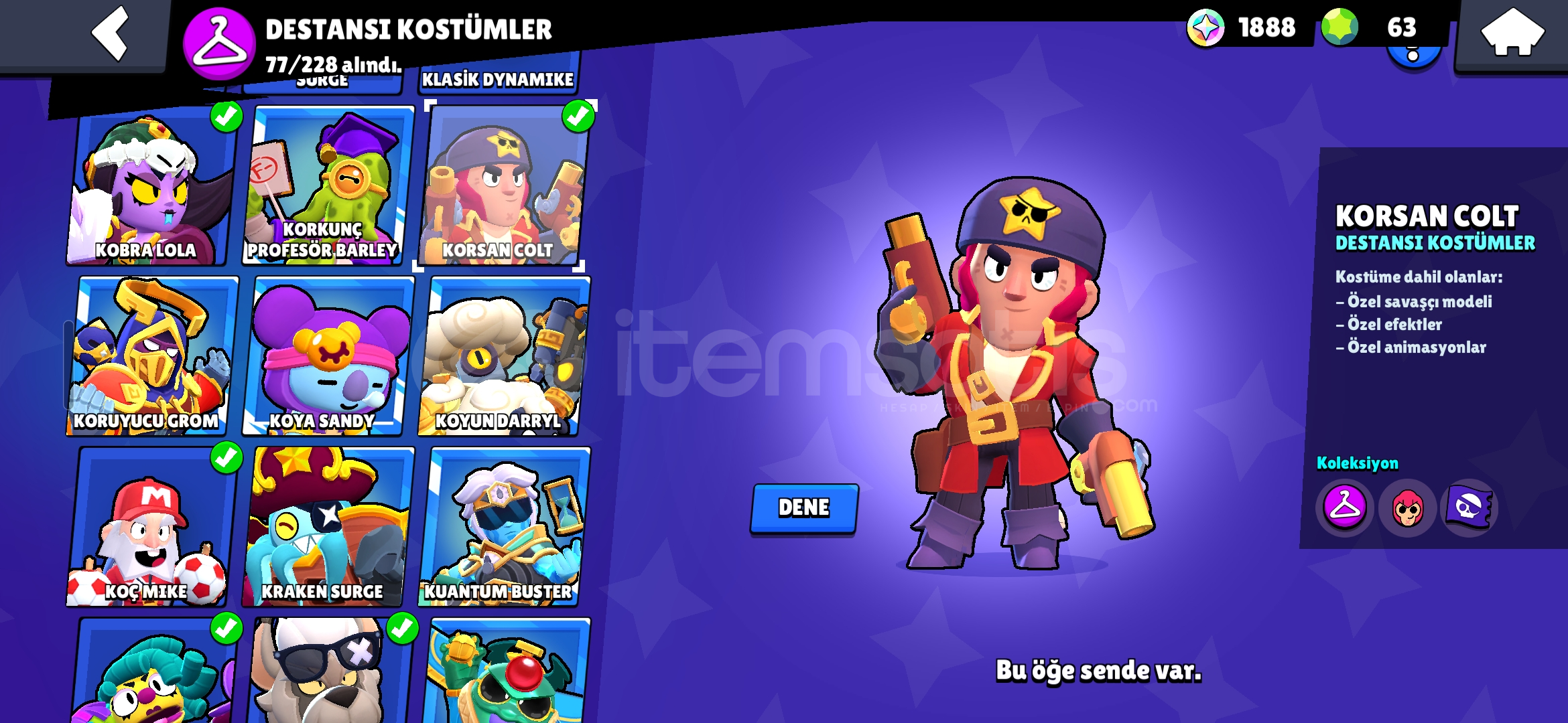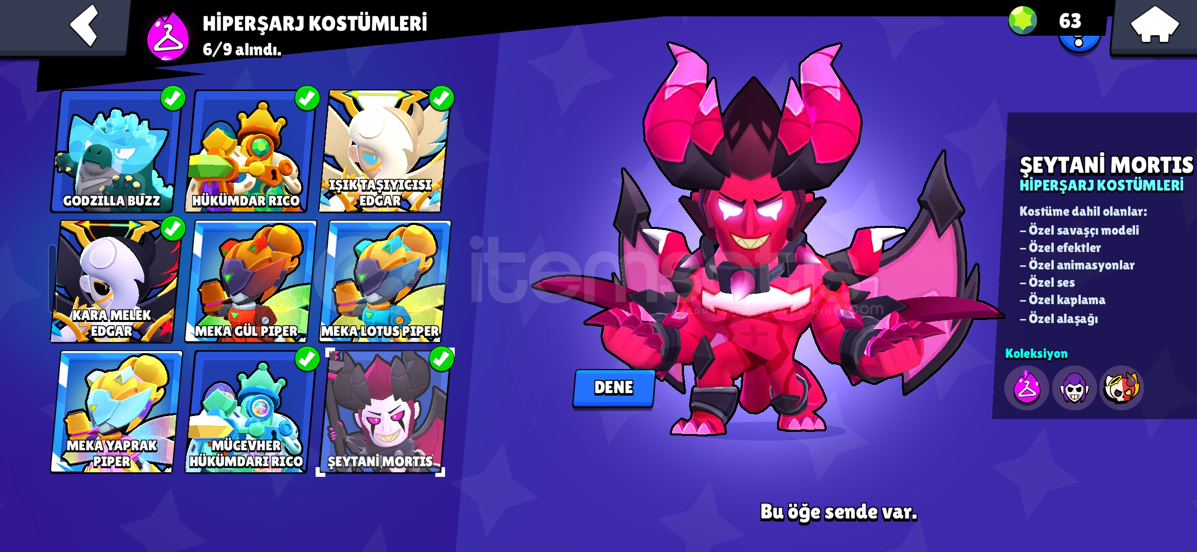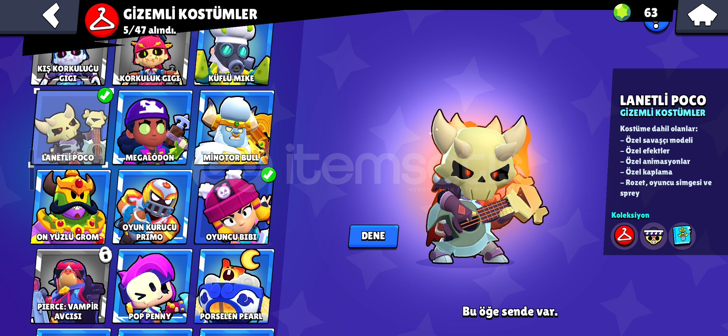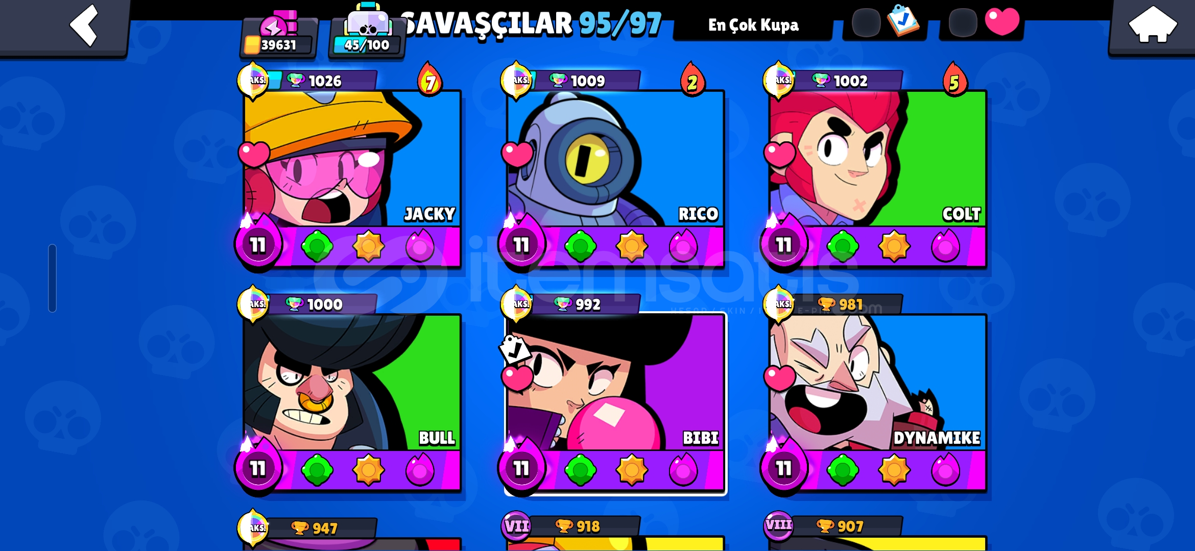 9 efsanevi kostüm5 gizemli kostüm80 destansı kostüm79 süper ender kostüm80ender kostüm30 hiper jarjlı karakter96 karakterli40 bin kupa hesap5 brawl pass alınmışÇOOK ÖZEL HESAPTIR