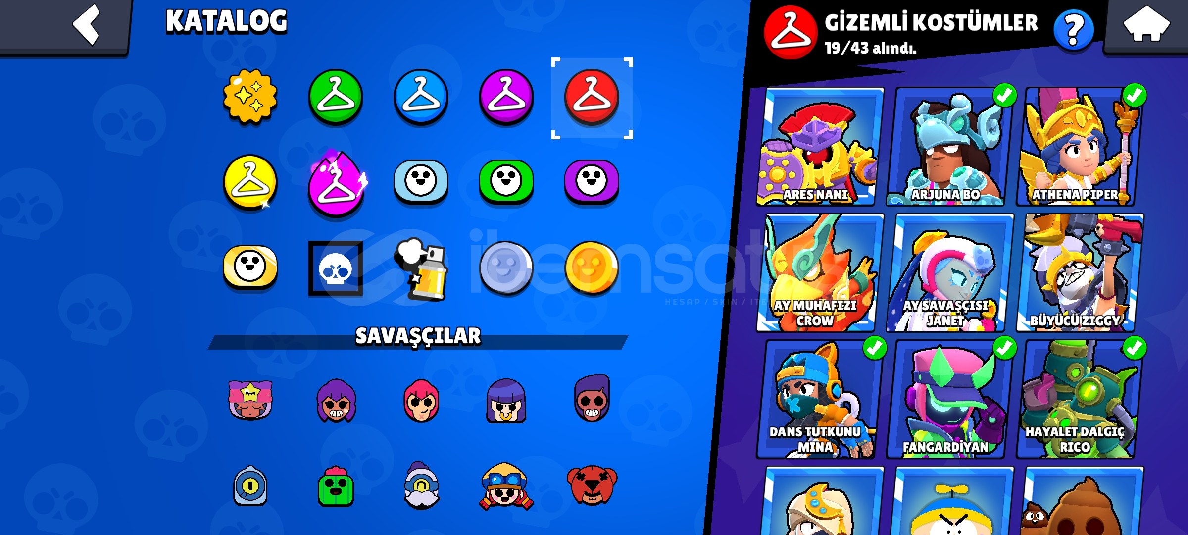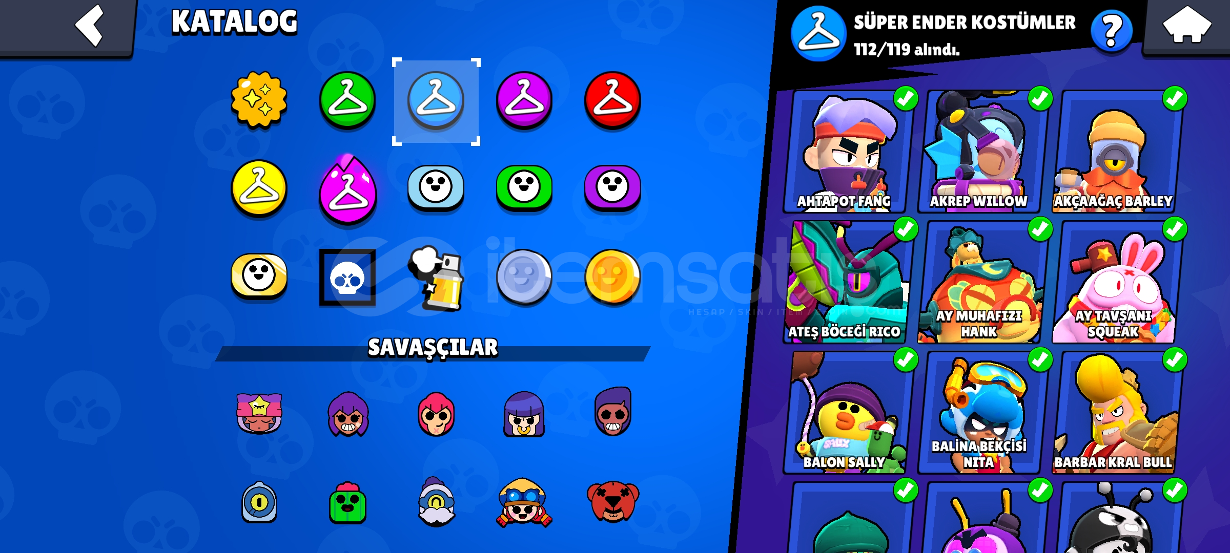 50 hipersarj full karaker. 60+ 11 seviye. 15k+ para basılmış. Pro passler full. 15 karakter unvanı toplam 28 ünvan. 2019 hesabı nadir kostümler ve sayamadığım birçok şey